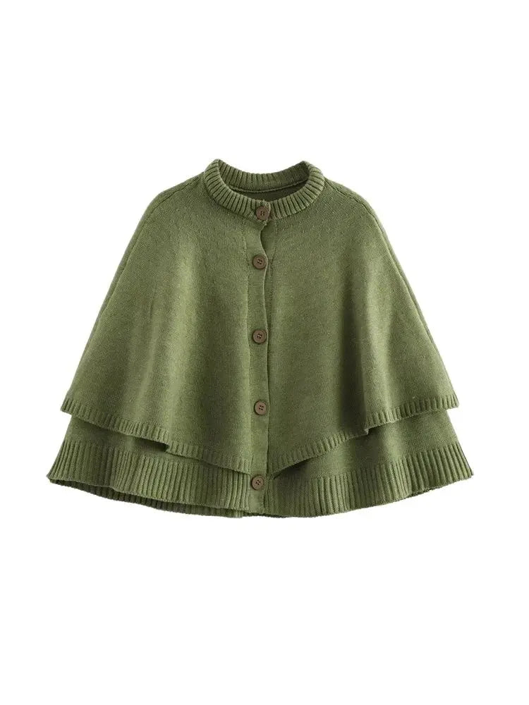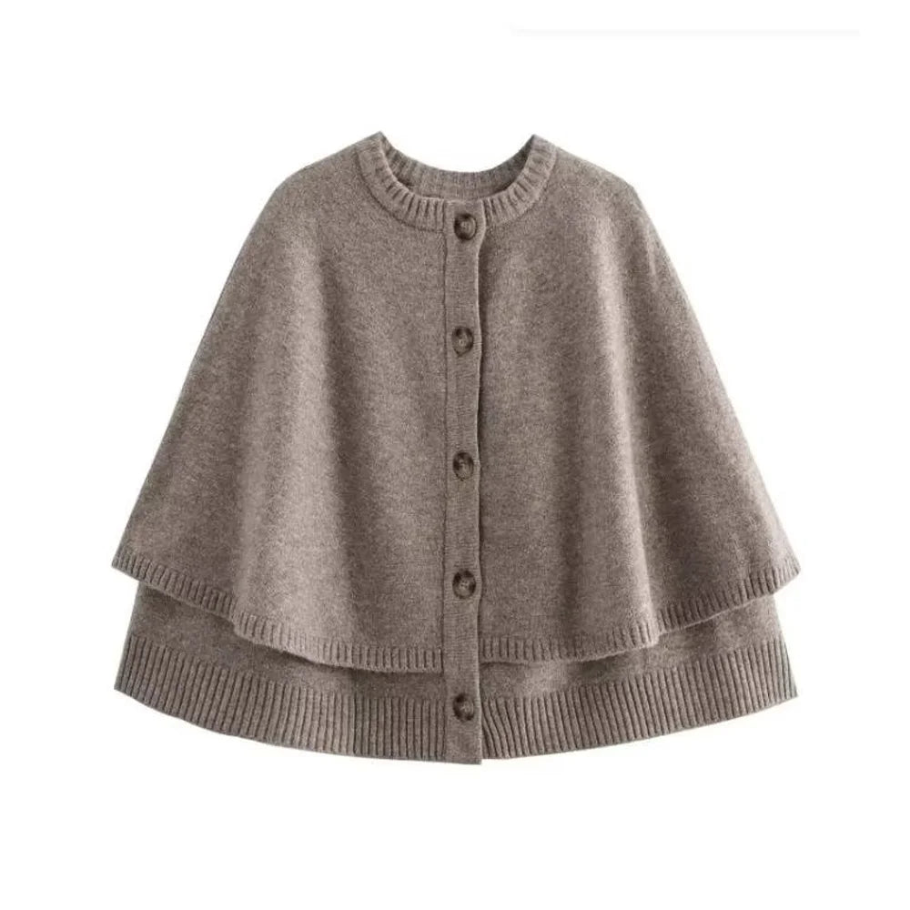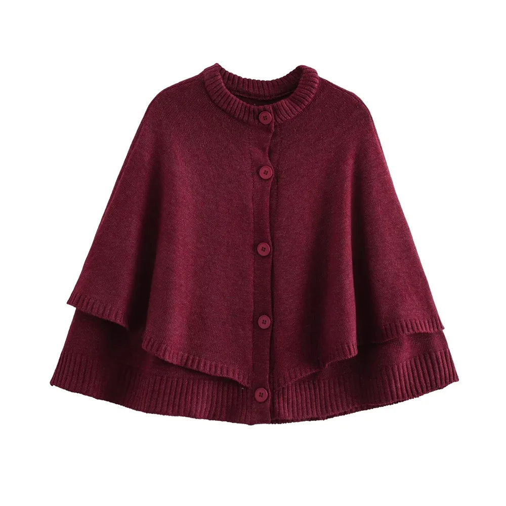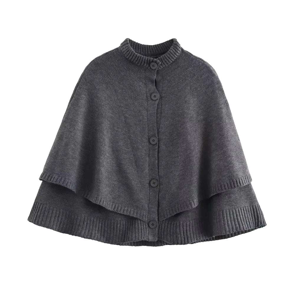 Upgrade your wardrobe with this Front Button Knit Cape Cardigan and stay stylish and comfortable all day long. Order yours today!