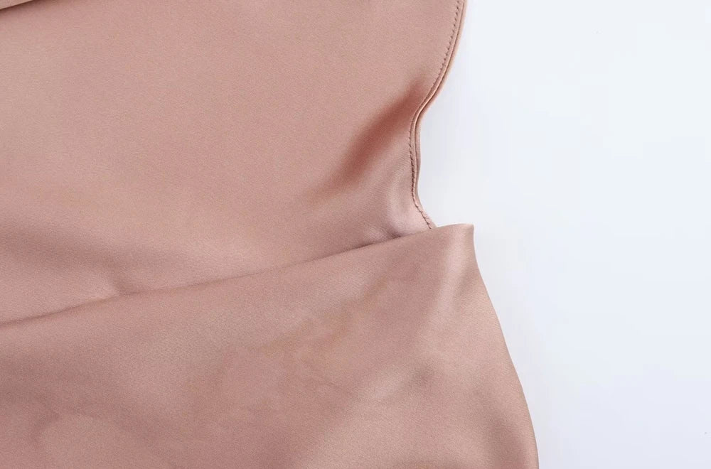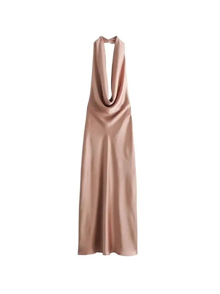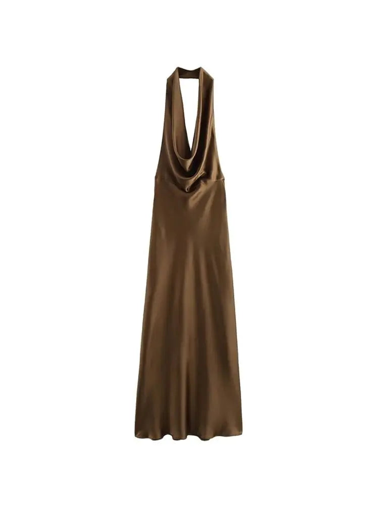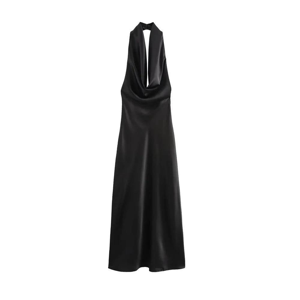 Upgrade your fashion game with our Satin Halter Neck Sleeveless Dress. Order now and add this must-have piece to your wardrobe!