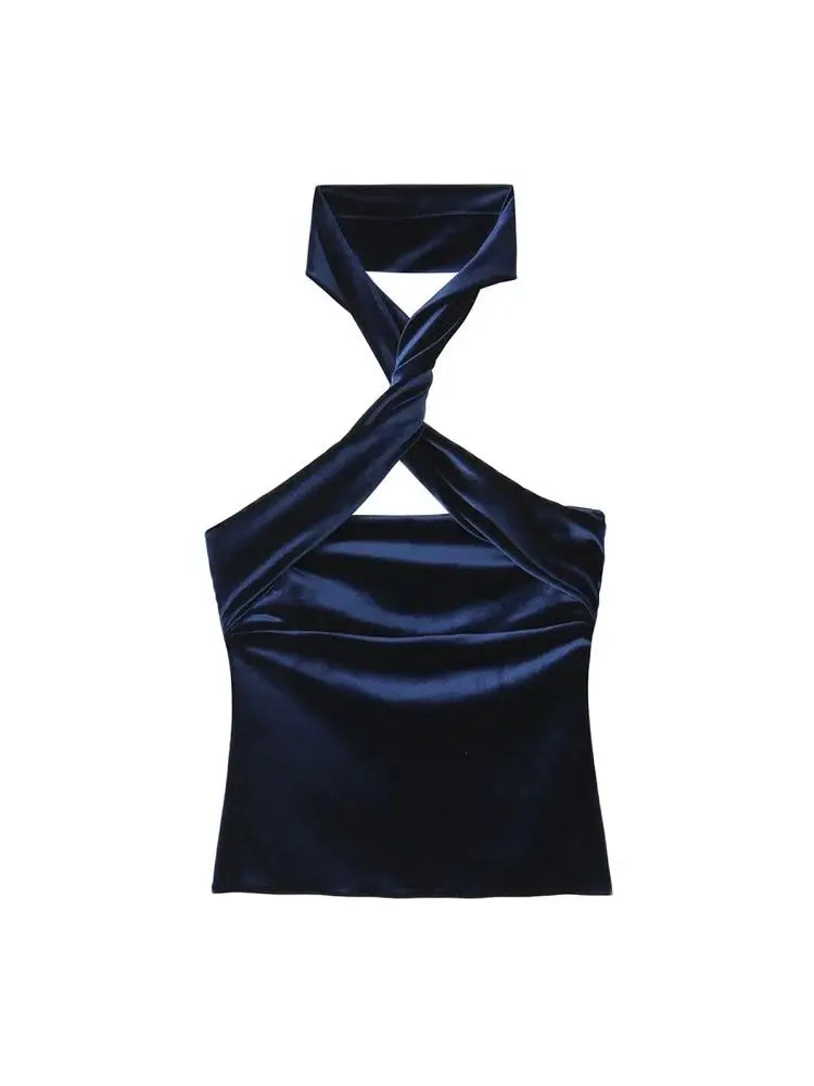 Velvet halter Neck Side Zipper blouse