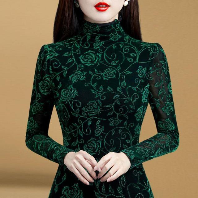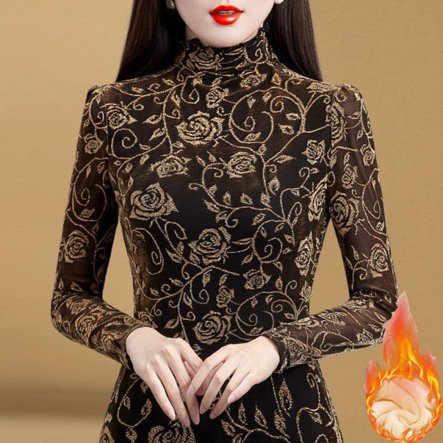 Turtleneck Flower print Long Sleeve Top