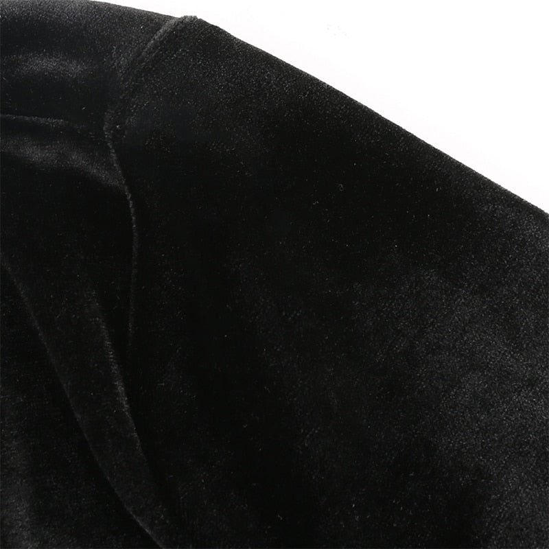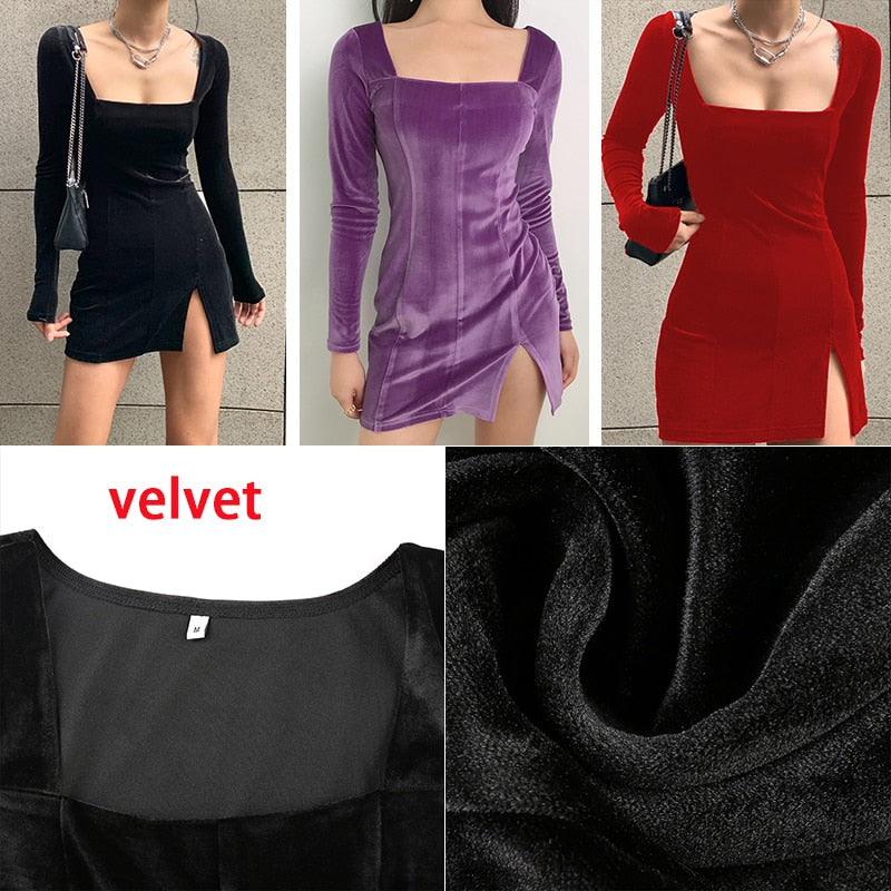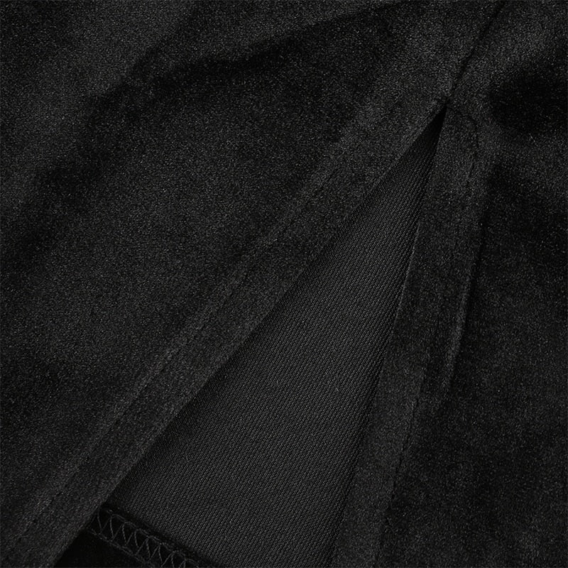 This dark and beautiful velvet dress is perfect for your next date night. The dress features a deep v-neckline and a backless design. The sleeves are short and it has a split in the front. It has a soft, smooth texture and is made of 95% polyester and 5% spandex.