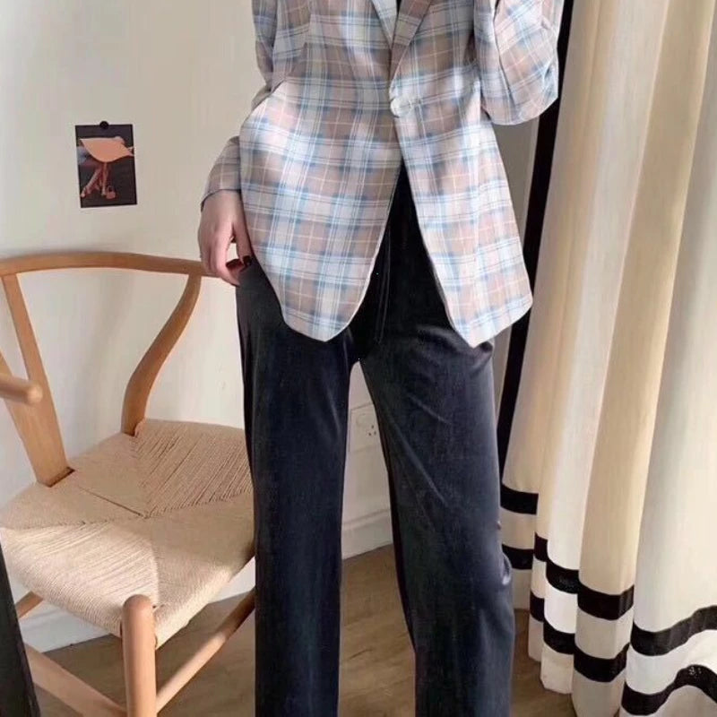 Made from high-quality velvet material, these trousers are both comfortable and stylish. The fabric is a soft and luxurious polyester, ensuring a smooth and flattering fit. With a length of 100cm, these trousers are perfect for any height. They come in one size, suitable for those who are 40-70KG on average.