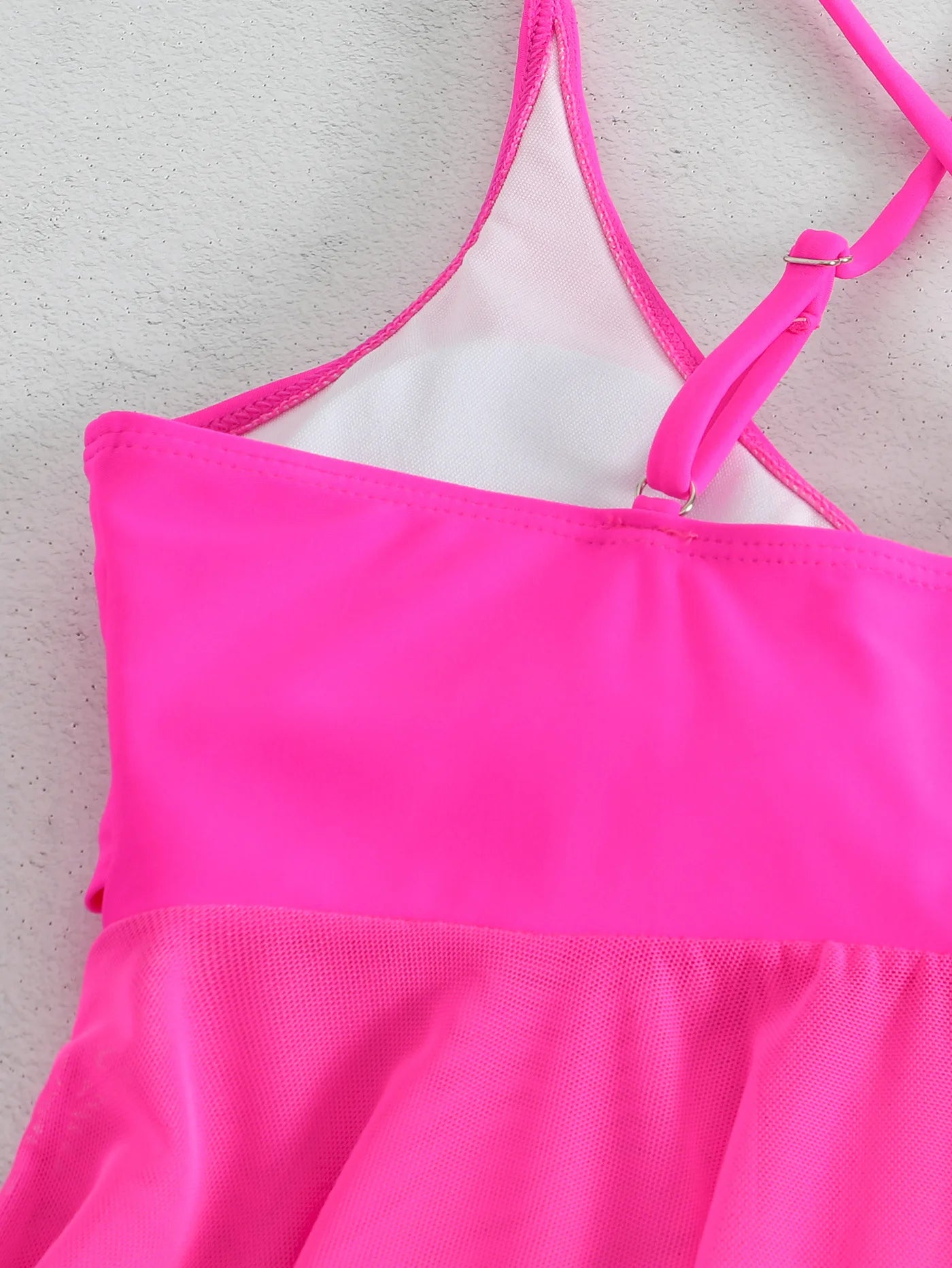The mesh patchwork design adds a touch of elegance, while the backless feature adds a hint of sexiness. The solid straps provide support and the push-up feature enhances your curves. This tankini set is perfect for a day at the beach or lounging by the pool. Available in a variety of sizes, this swimsuit is suitable for all body types.