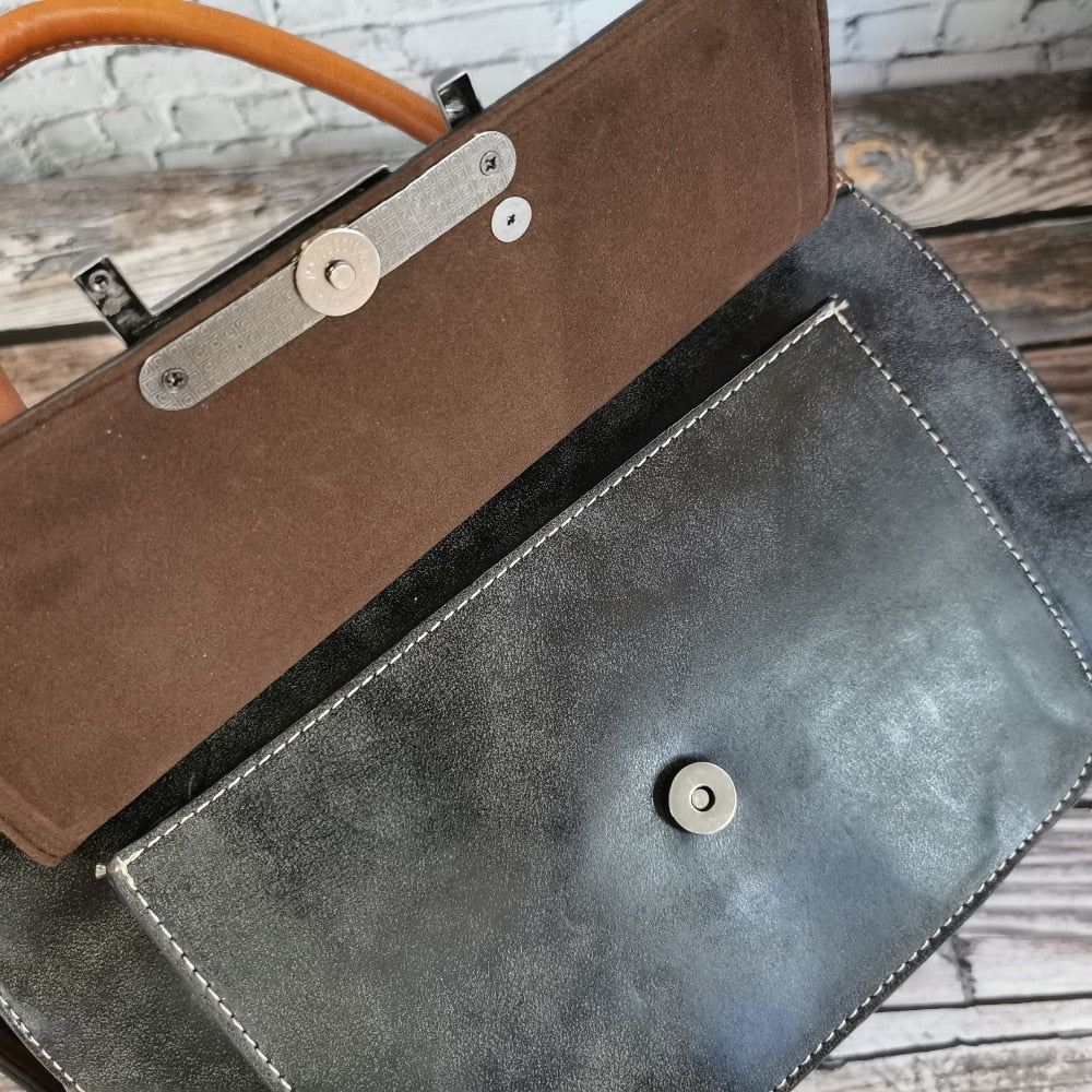 Vintage leather-look Shoulder Handbag