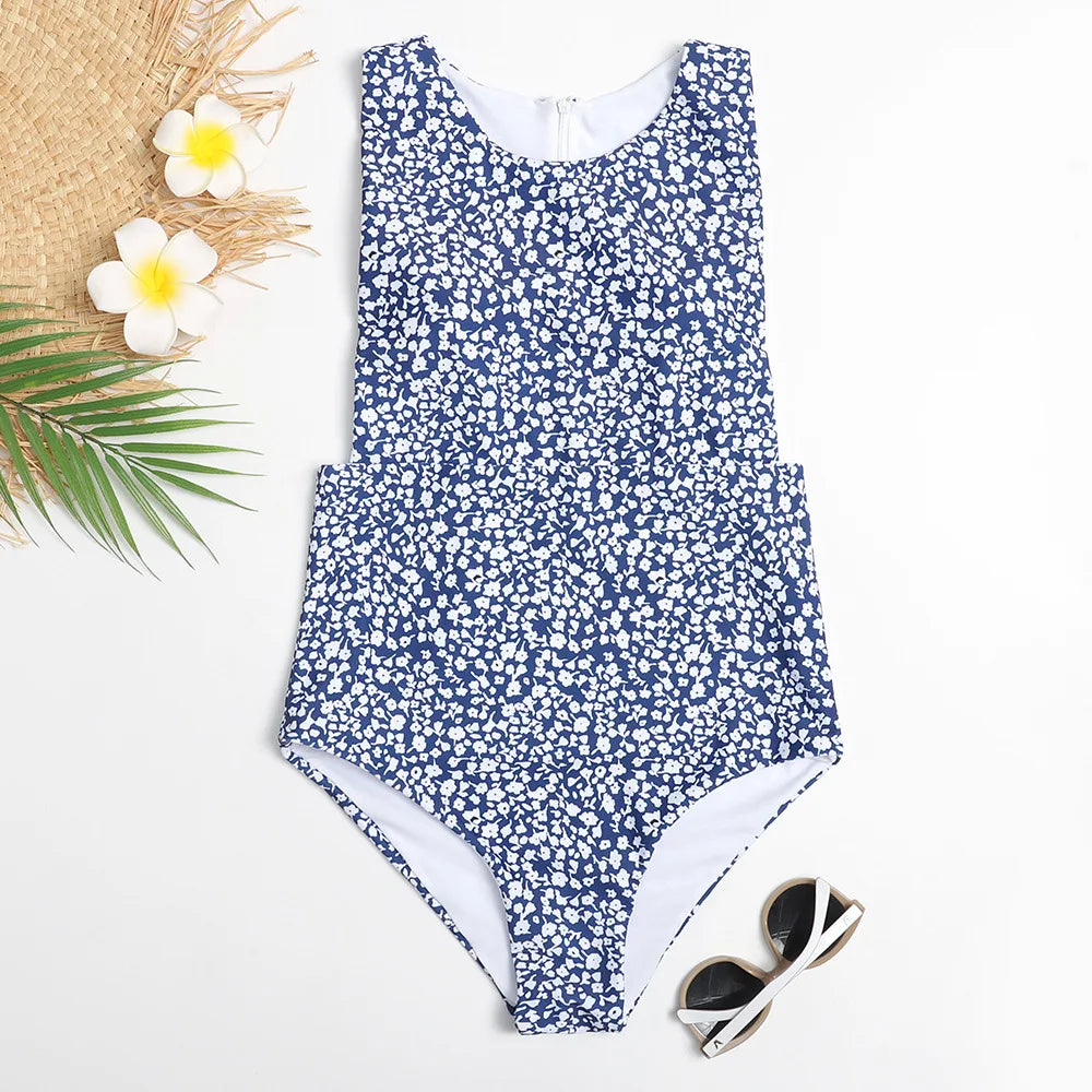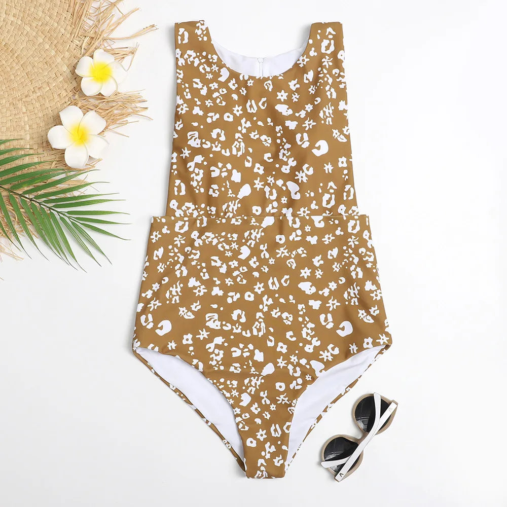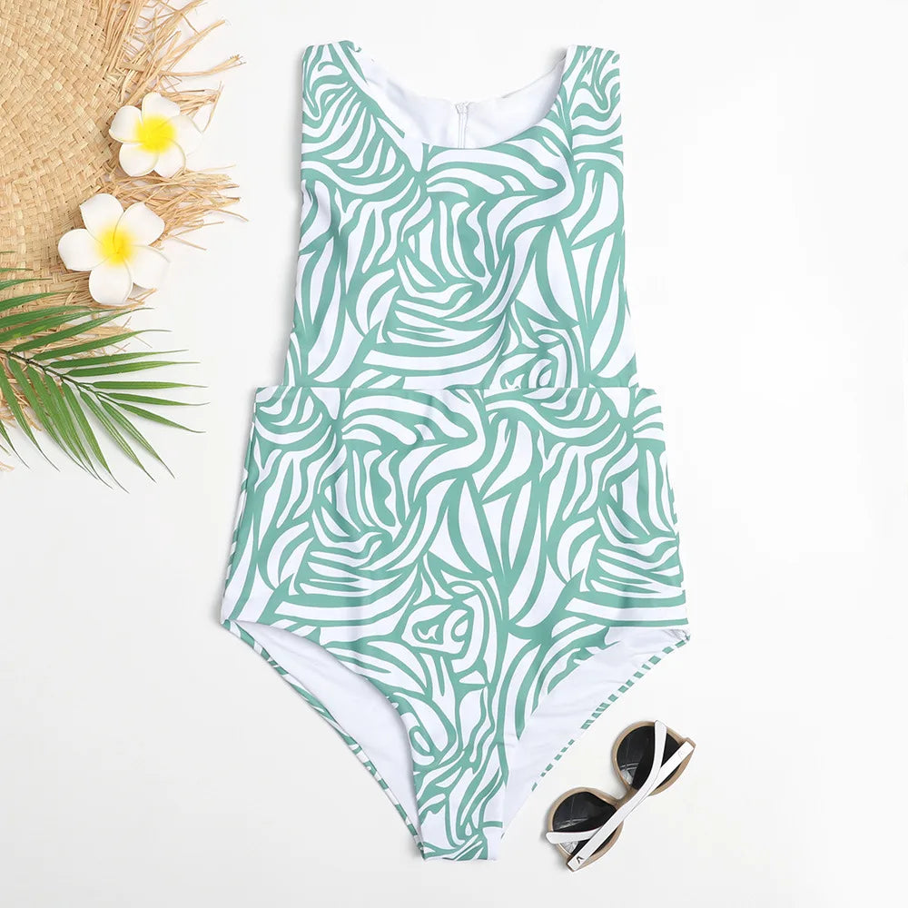 The retro print and zipper detail add a touch of vintage charm, making it a must-have for any fashion-forward beachgoer.