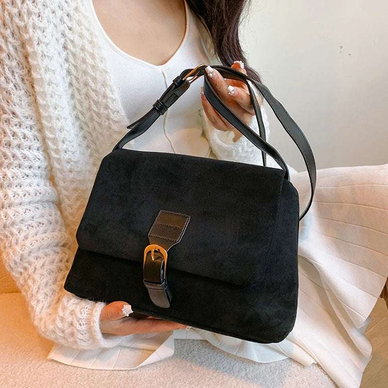 Made from high-quality faux suede material, this bag exudes luxury and sophistication. The underarm design adds a unique touch to the classic shoulder bag style, making it a statement piece for any outfit.