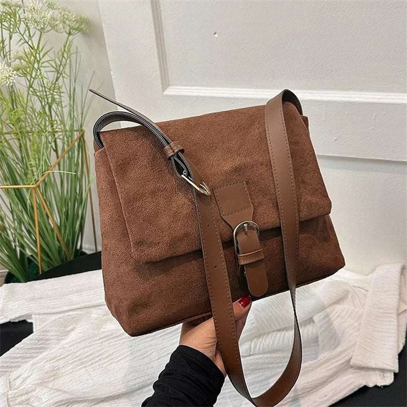 Upgrade your accessory game with this faux suede shoulder bag. Its timeless design and high-quality materials make it a reliable and versatile choice for any fashionista. Shop now and add this must-have piece to your collection!