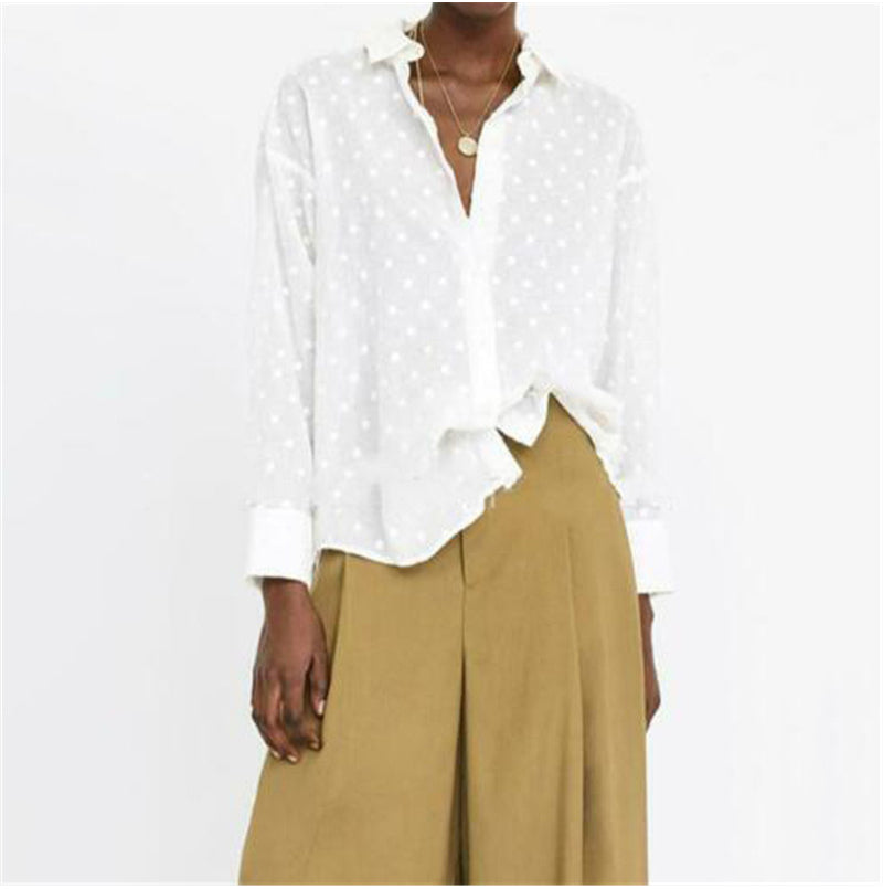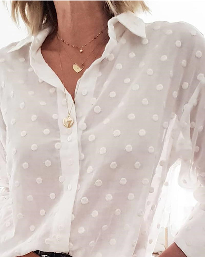 Don't settle for ordinary when you can have extraordinary. Upgrade your wardrobe with the White Polka Dot Long Sleeve Blouse from IMKOLOR. Shop now at imkolor.com.