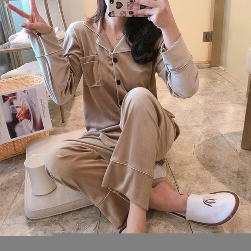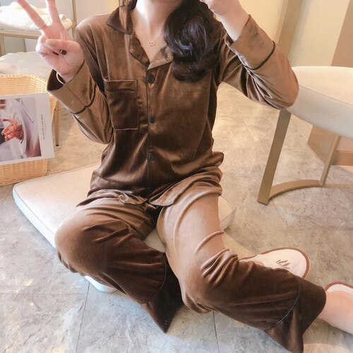 Stay cozy and stylish this winter with our Winter Velvet Long Sleeve Pyjamas. Made with high-quality polyester and velvet material, these pyjamas are perfect for keeping you warm and comfortable during the colder months. The turn-down collar and long sleeves add a touch of elegance to the plain design, making it suitable for both lounging at home and sleeping in.