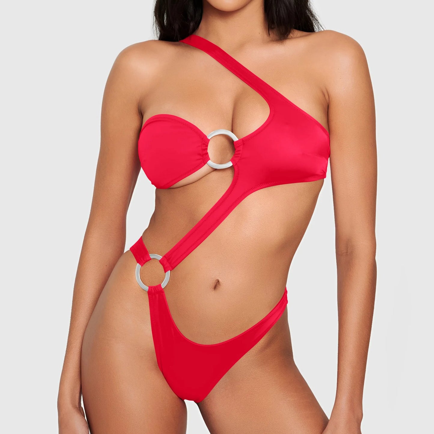 Introducing our latest addition to our swimwear collection - the Women's one shoulder Cut Out One Piece Swimwear. This stylish and trendy swimsuit is designed to make you stand out at the beach or pool.