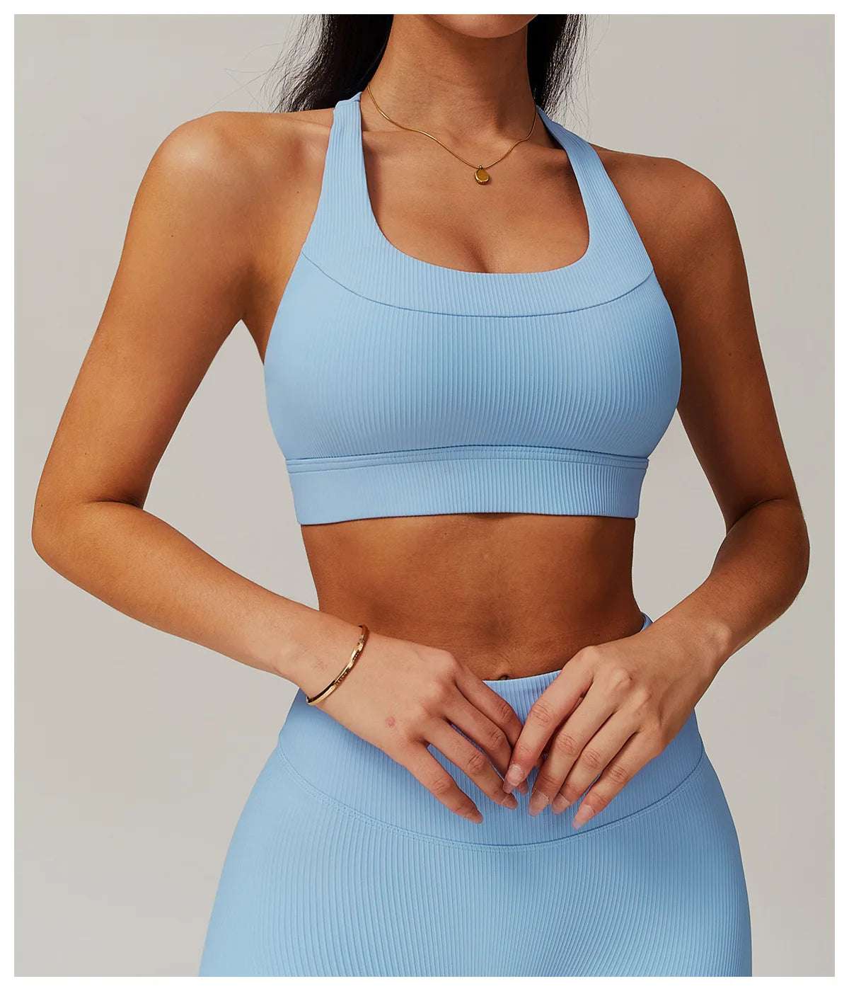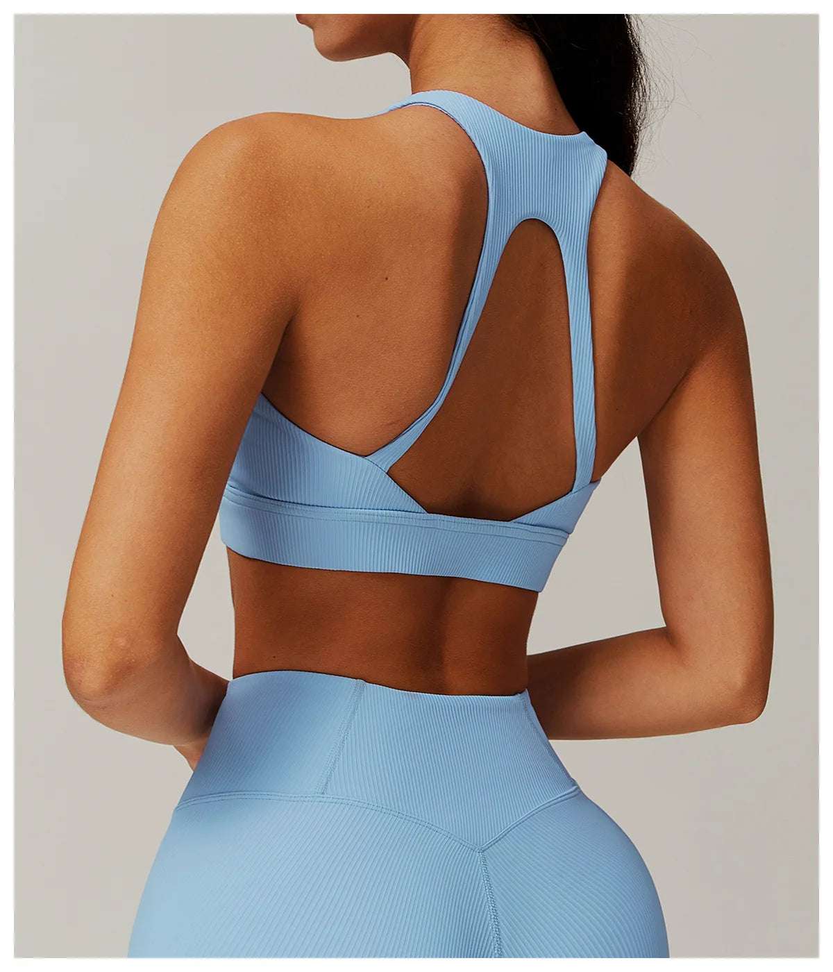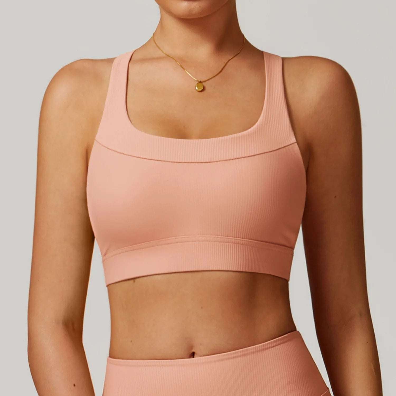 Breathable Absorb Sweat Shockproof Padded Running Fitness Ribbed Bra