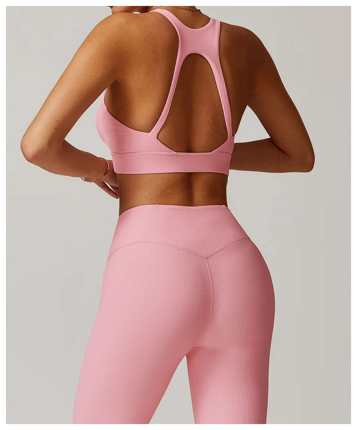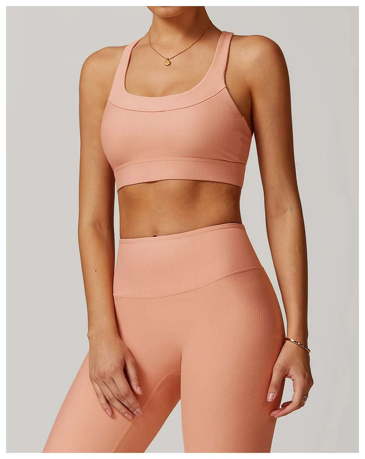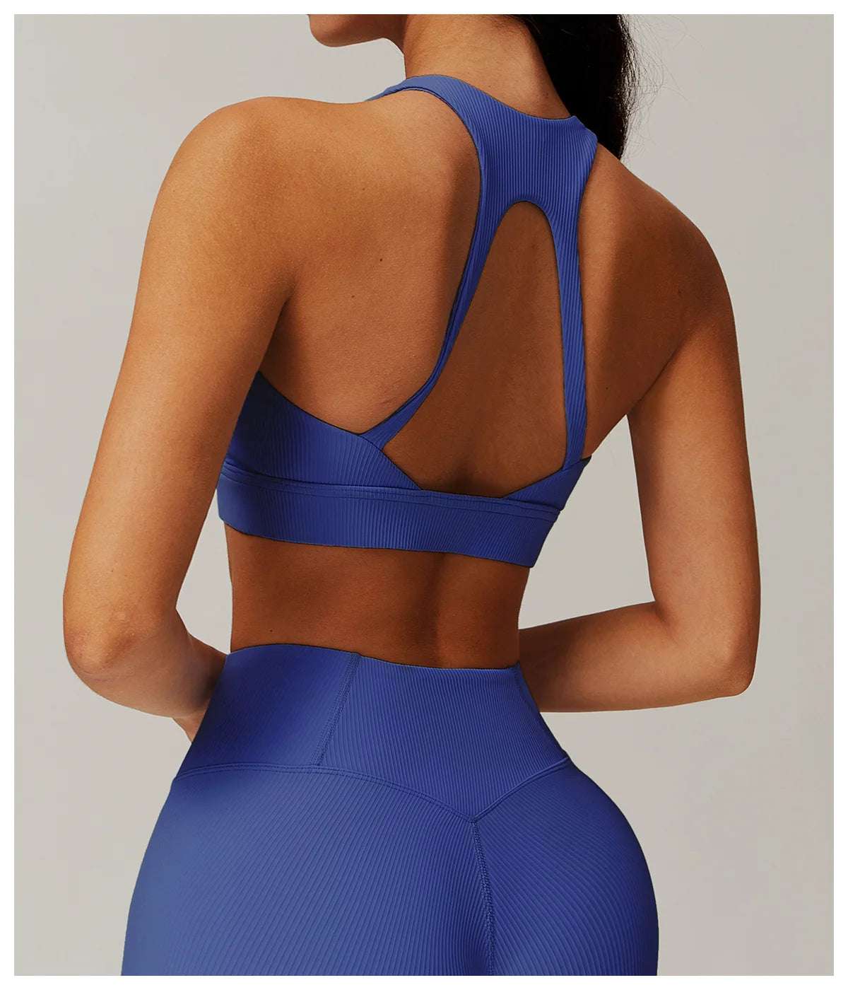 Breathable Absorb Sweat Shockproof Padded Running Fitness Ribbed Bra