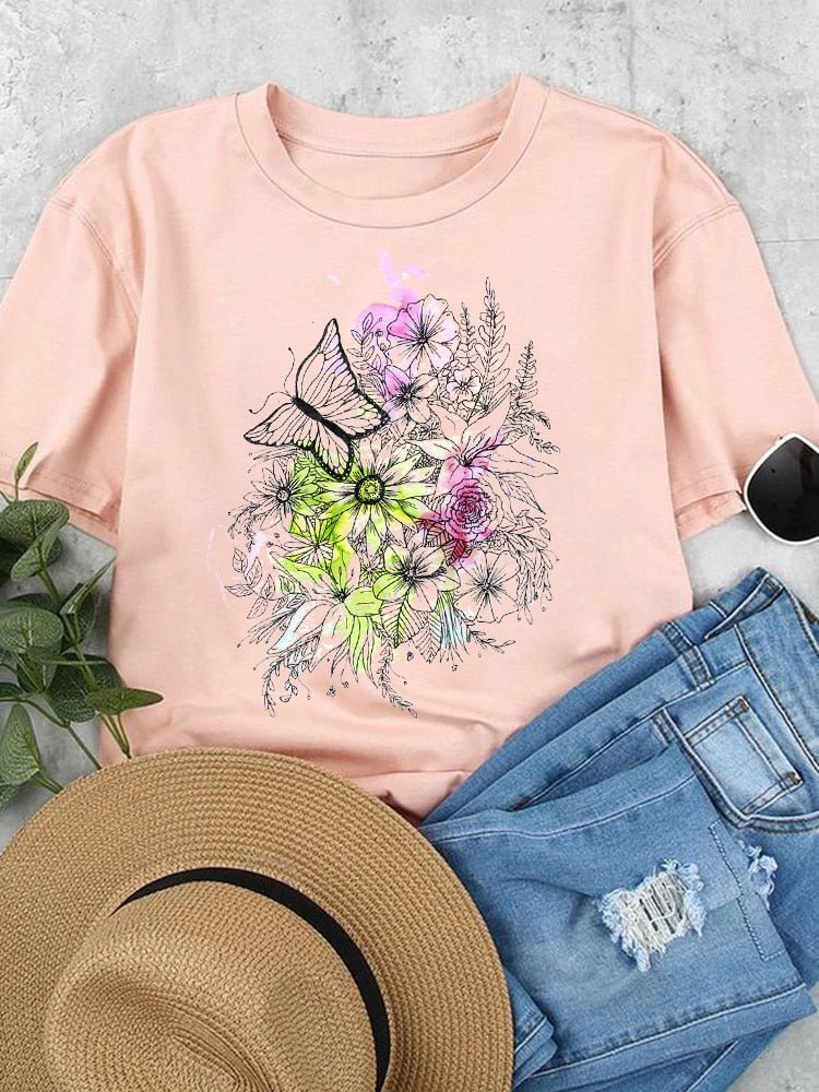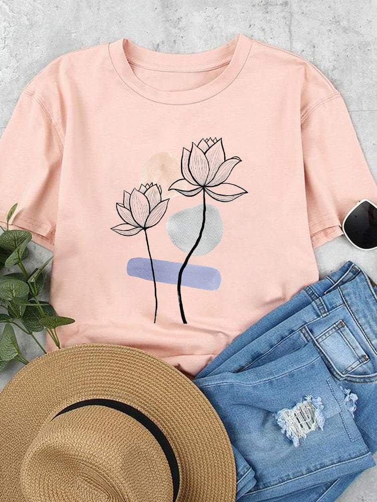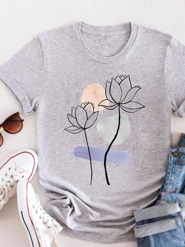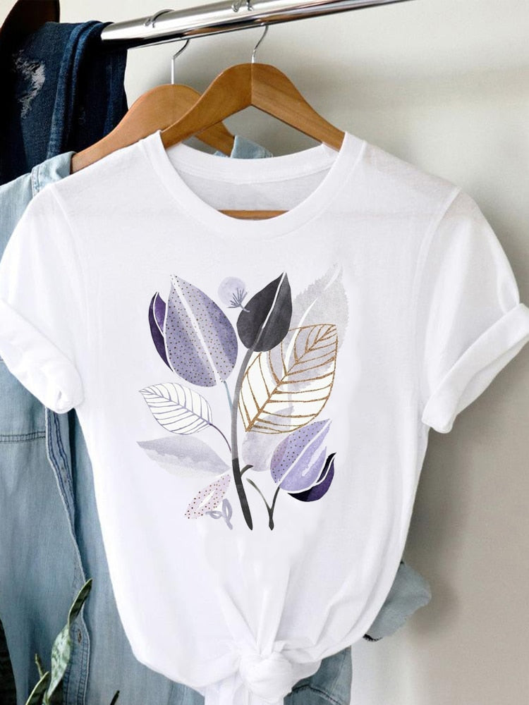 Women Cartoon Casual Fashion Graphic Regular T-shirt