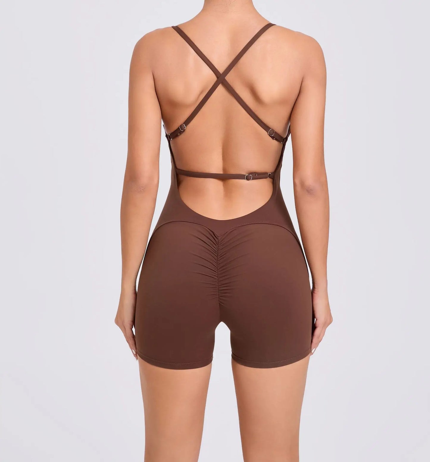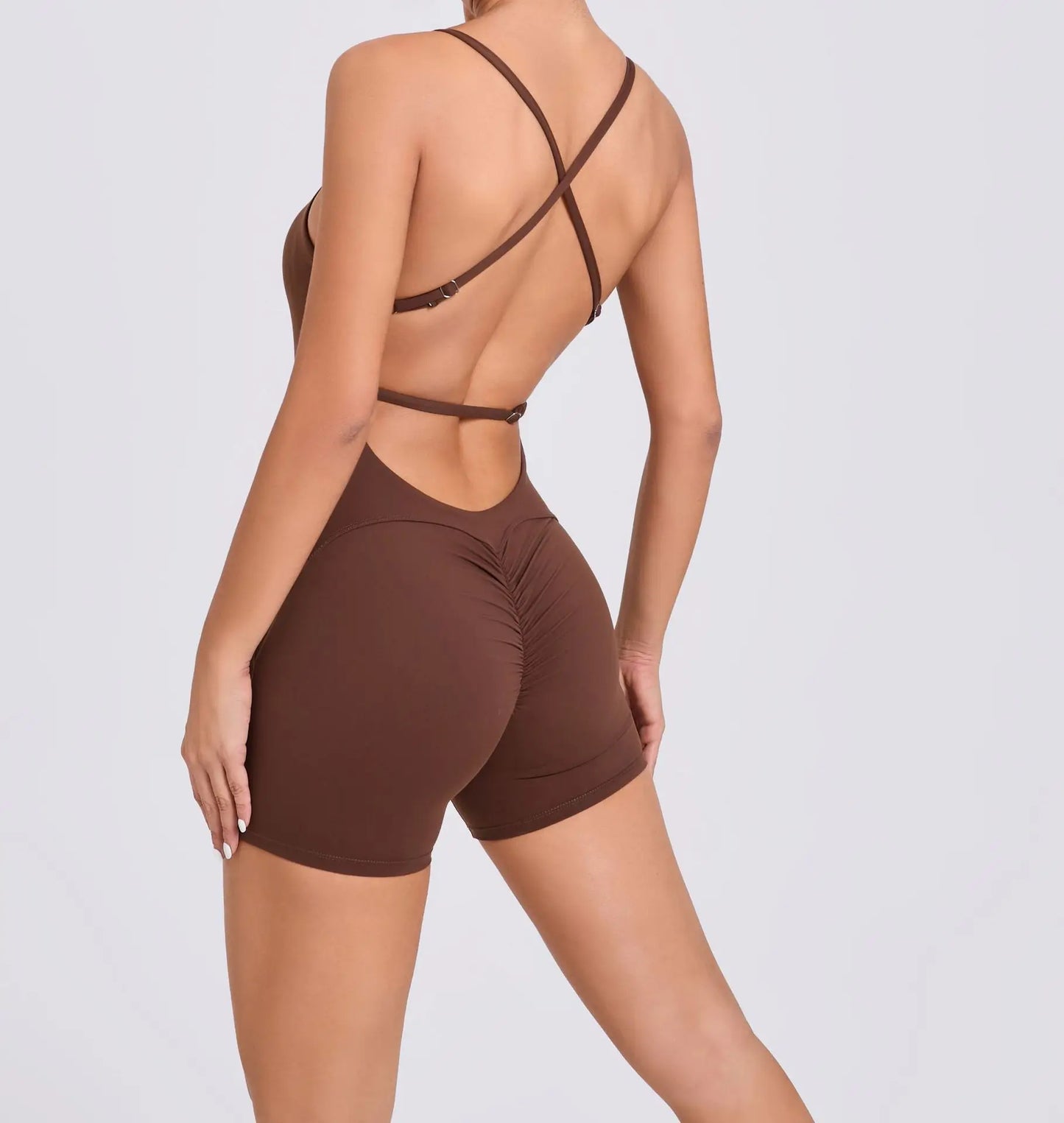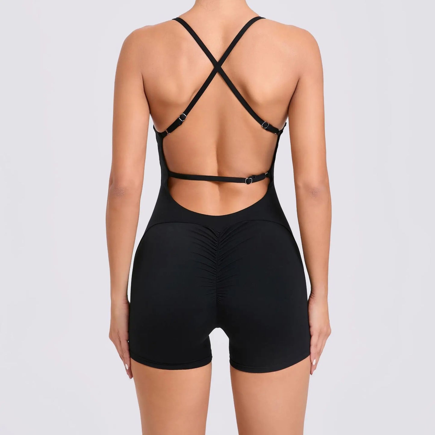 This all in one backless padded jumpsuit is the perfect addition to your workout wardrobe.