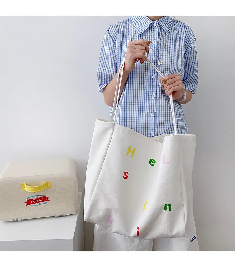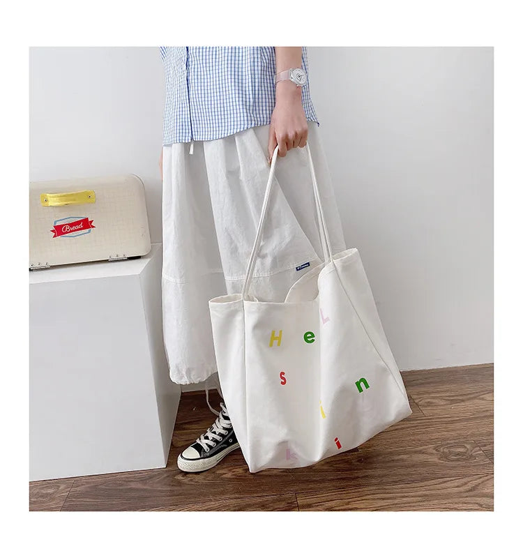 This Letters Canvas Shoulder Bag is the perfect accessory for any woman looking for a stylish and functional bag.