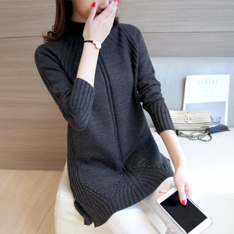 This Long sleeve high neck knitted Sweater top is crafted from warm and cosy materials, keeping you both stylish and comfortable in any weather. The high neck design ensures extra coverage and warmth. Perfect for a casual everyday look.