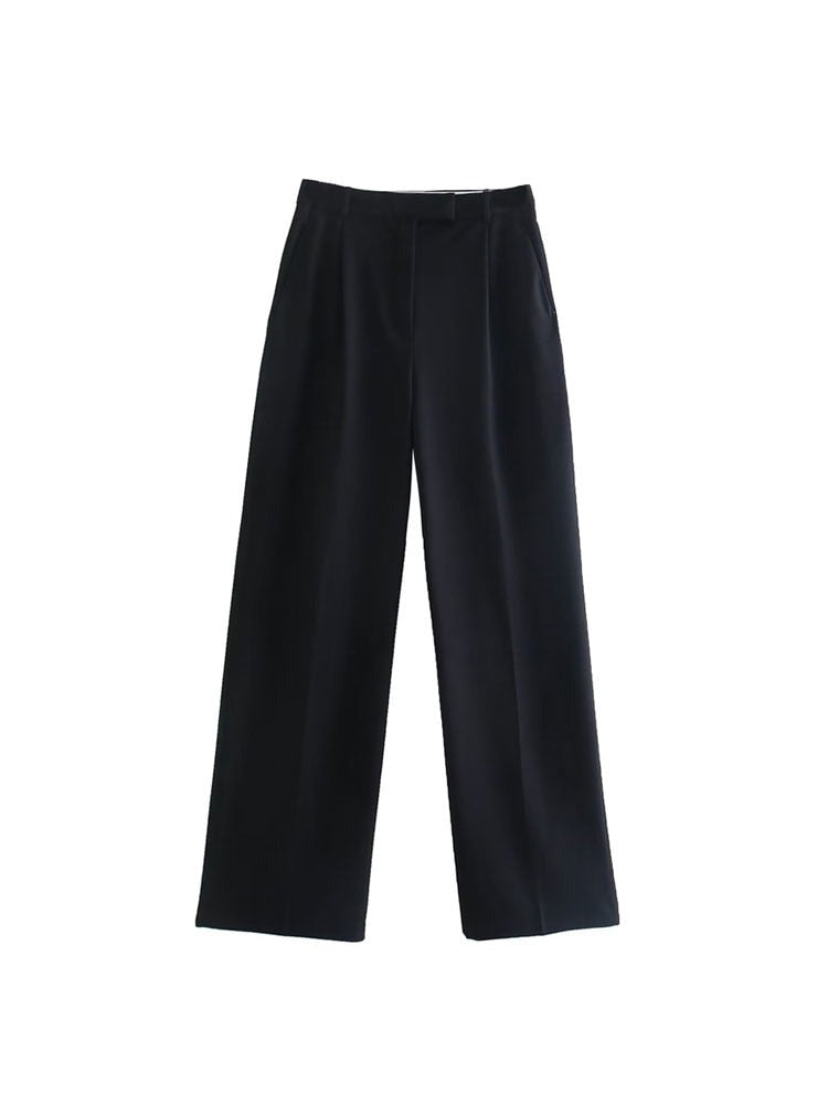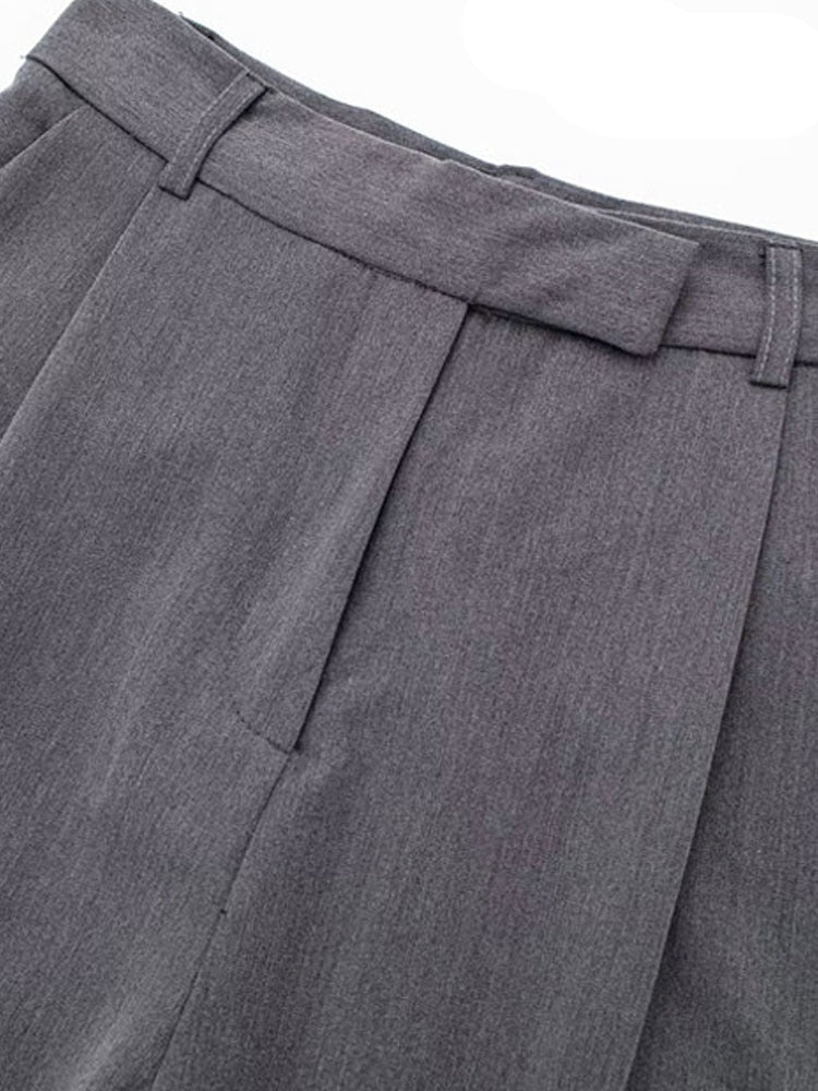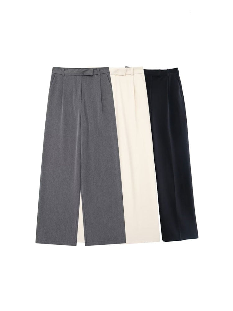 Women Fashion Darts Front Pockets Wide Leg Pants
