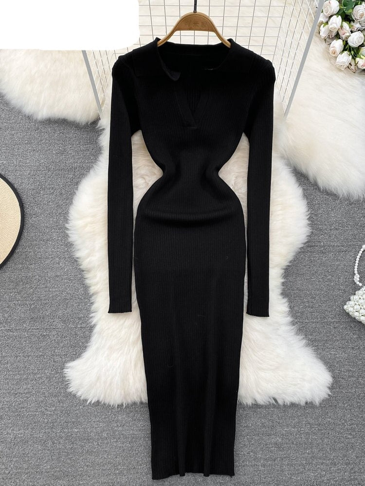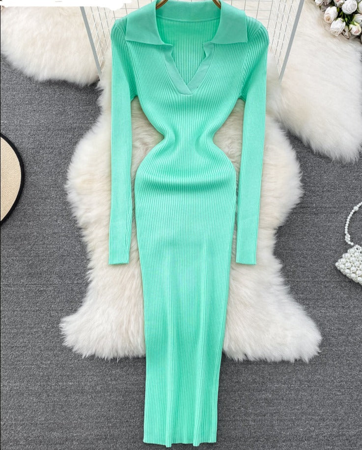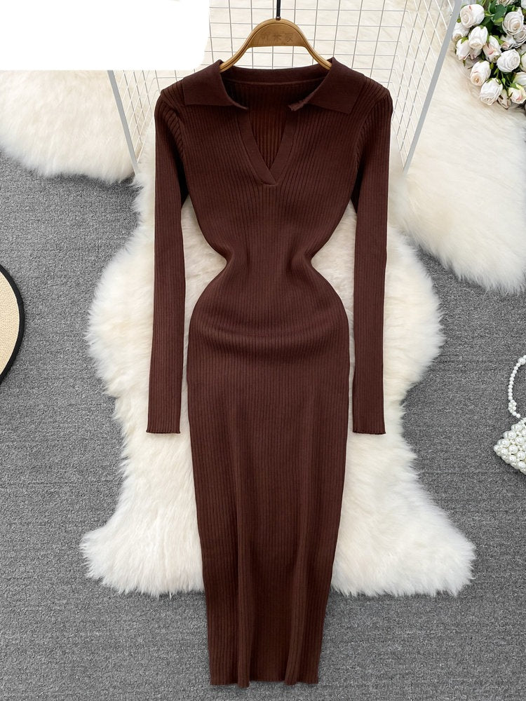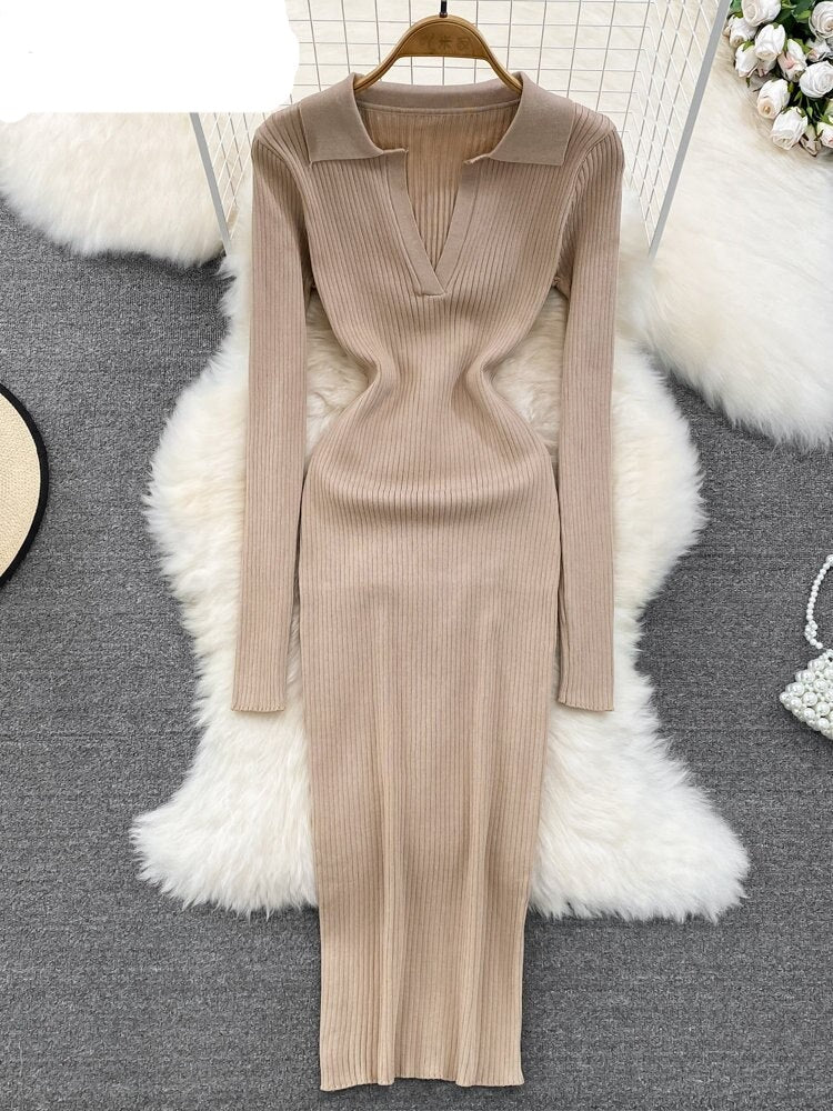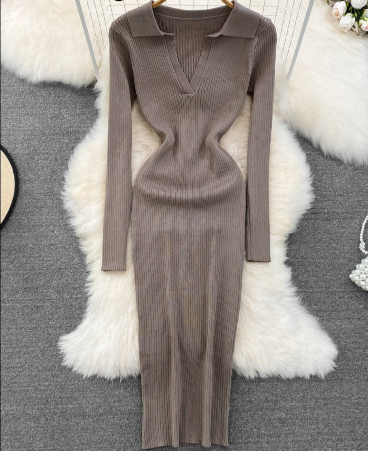This elegant Long Sleeve turned down Neck Knitted Dress is the perfect addition to any wardrobe. Crafted from lightweight and breathable fabric, this dress offers you breathable comfort and style thanks to its delicate shell-like knit. The long sleeve and turned down neck makes it perfect for any occasion.