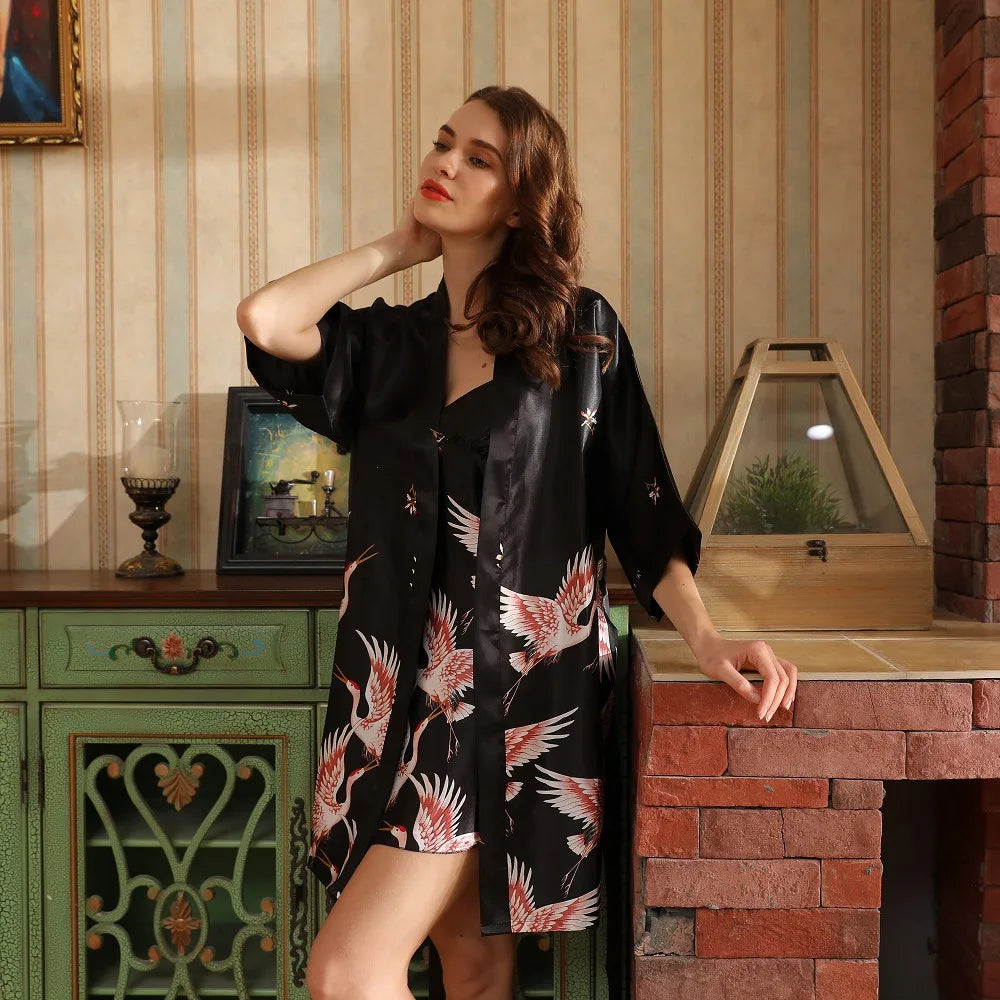 Get ready to elevate your sleepwear game with our stunning 2 piece robe night dress set. Made from high-quality polyester material, this set is designed to provide ultimate comfort and style. The set includes a beautiful robe and a matching night dress, perfect for a cozy night in or a special occasion.