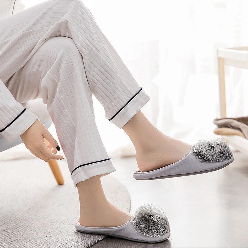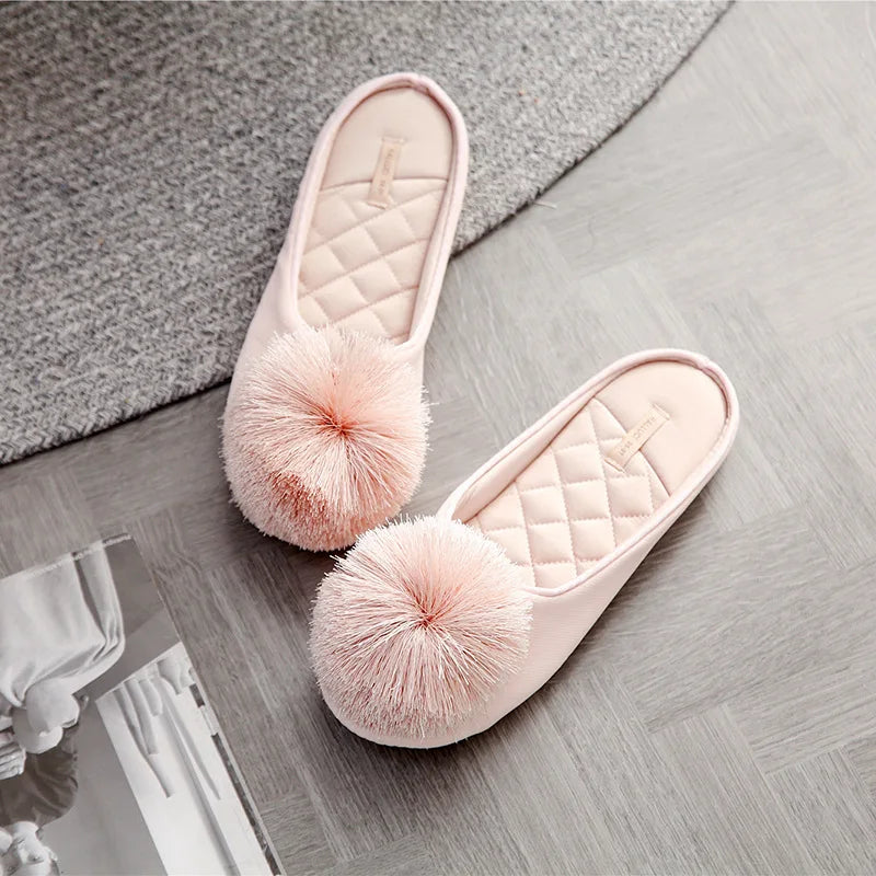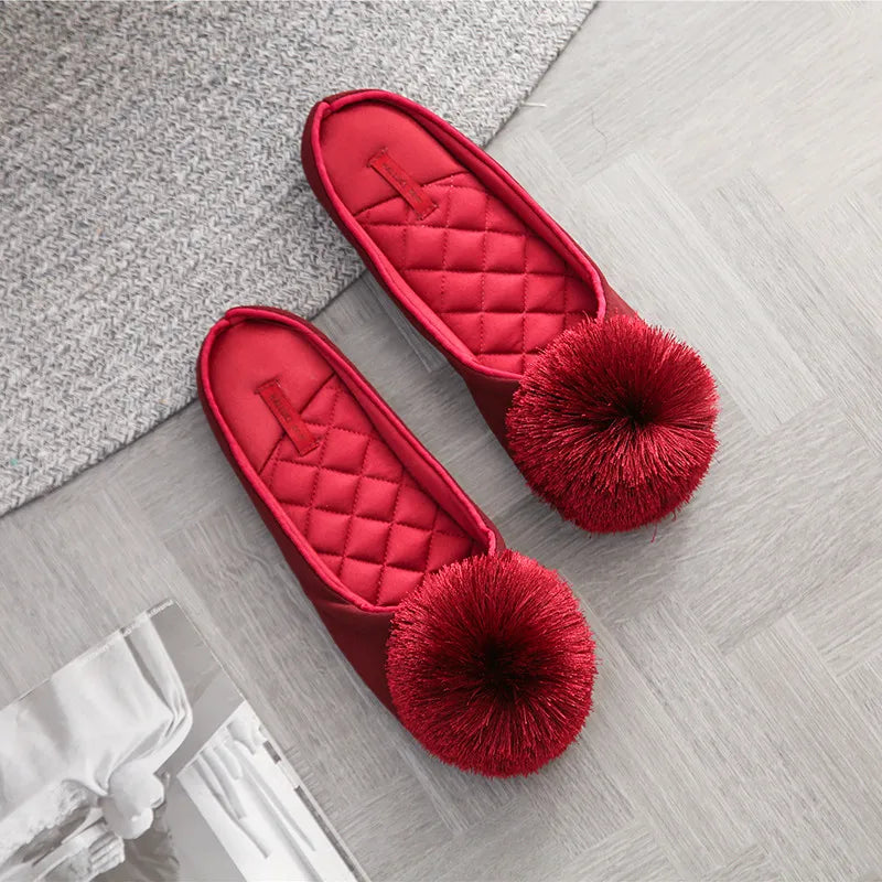Treat your feet to luxury with our Women Satin Furry Slippers. Made with soft, silky satin and lined with a soft pompom, these slippers will keep your toes toasty and stylish. Perfect for lounging at home or as a cute accessory for a night in, these slippers are a must-have!