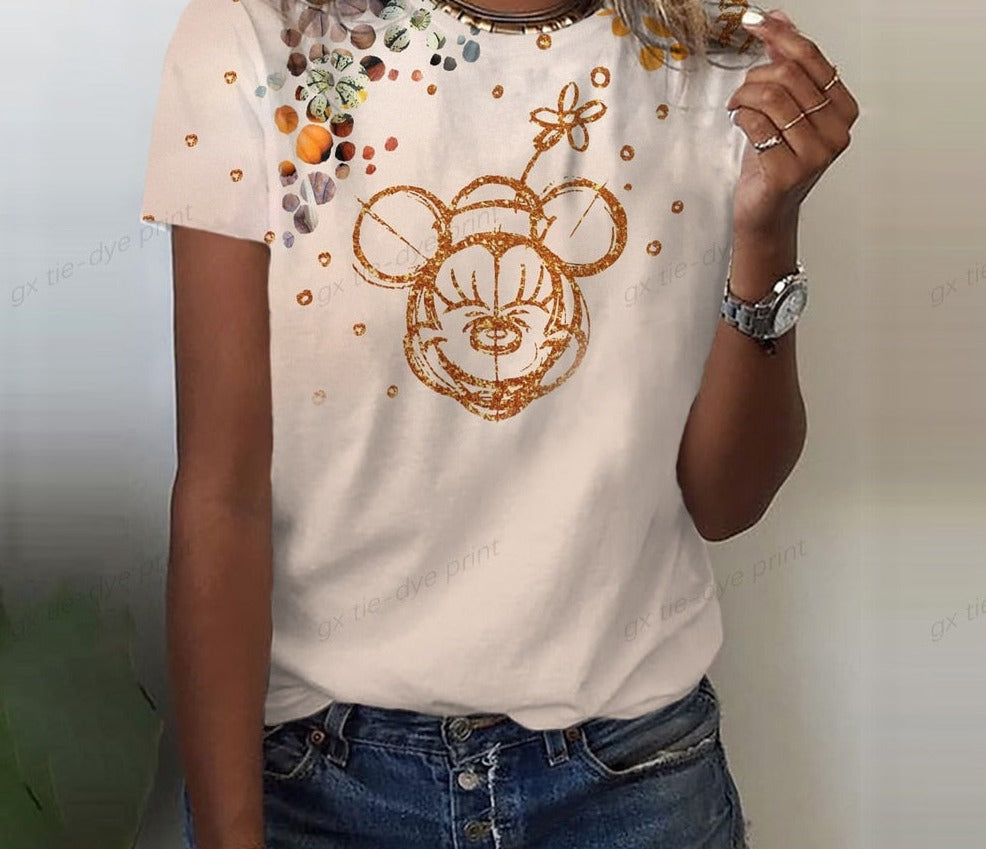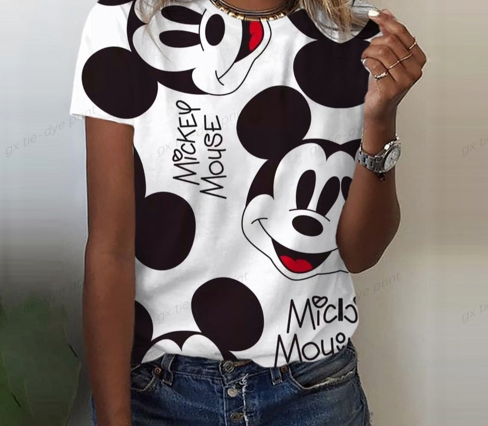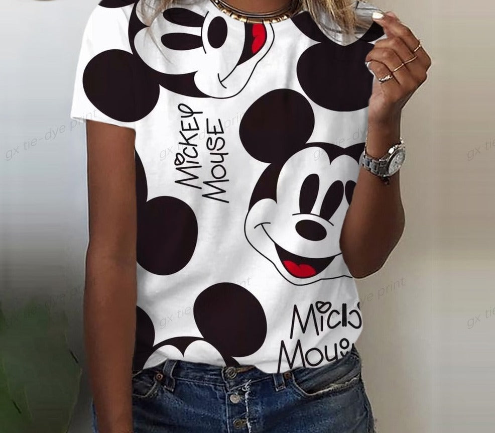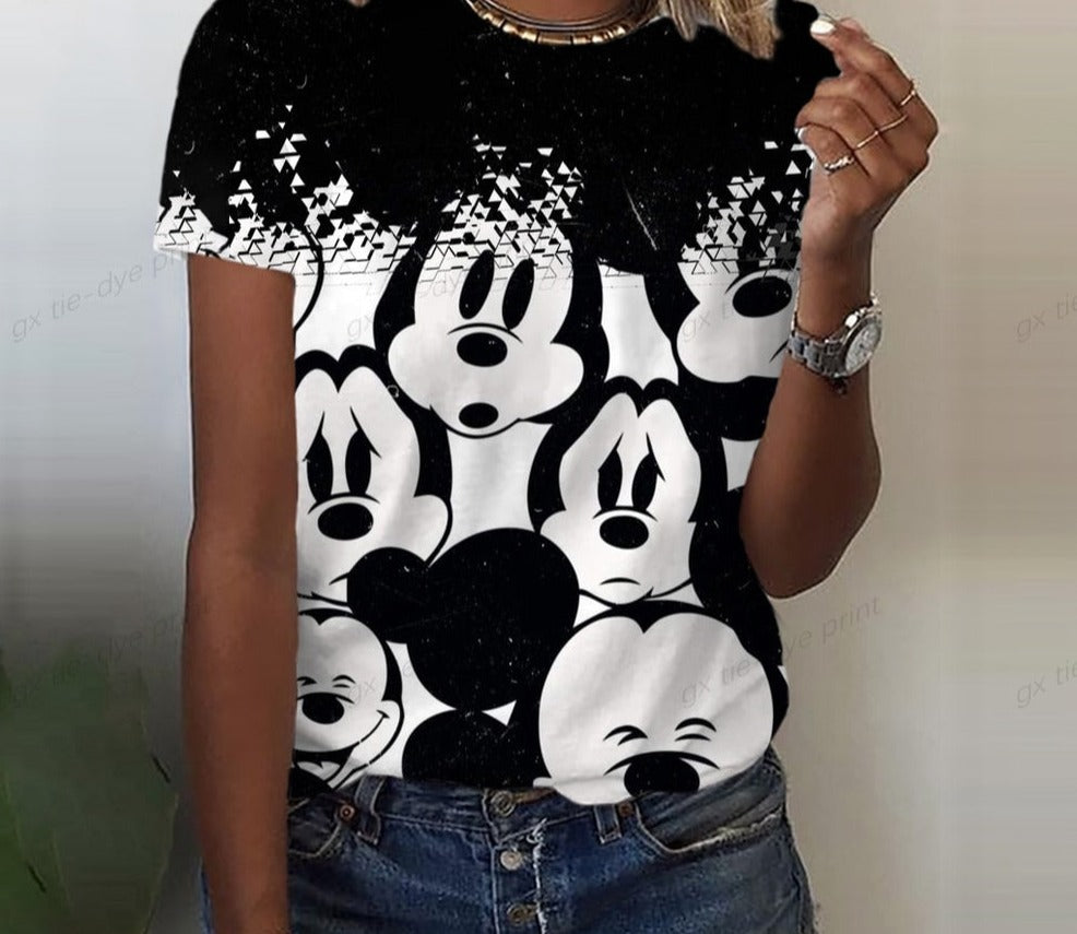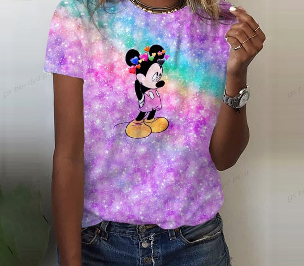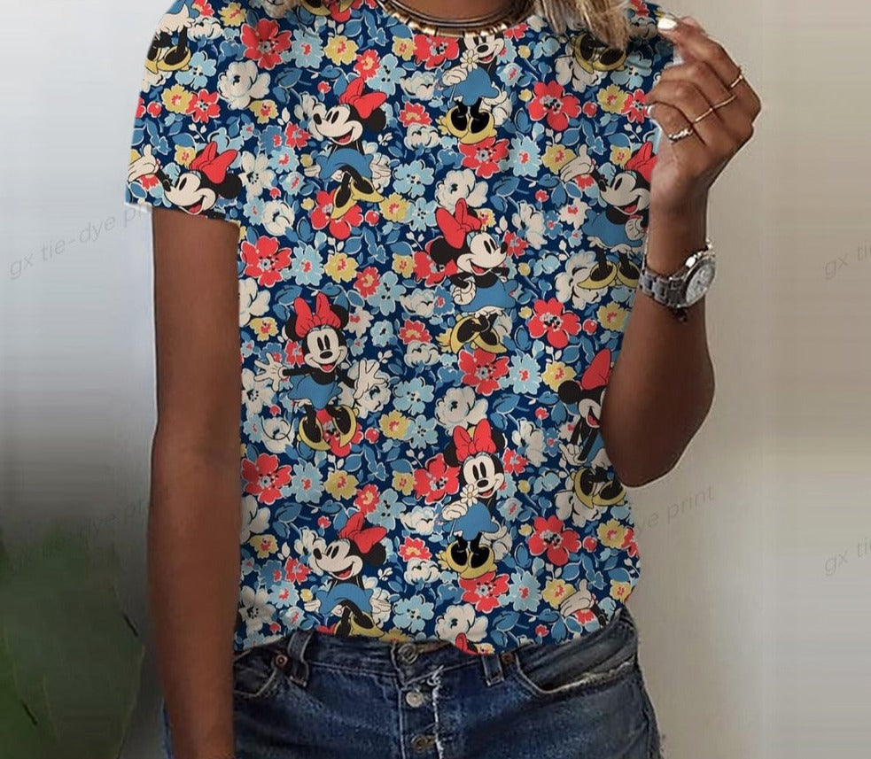 The tee is adorned with a beautiful cartoon pattern, adding a touch of whimsy and fairy tale charm to your outfit. It is the perfect choice for those who love to stand out and make a statement with their fashion choices.