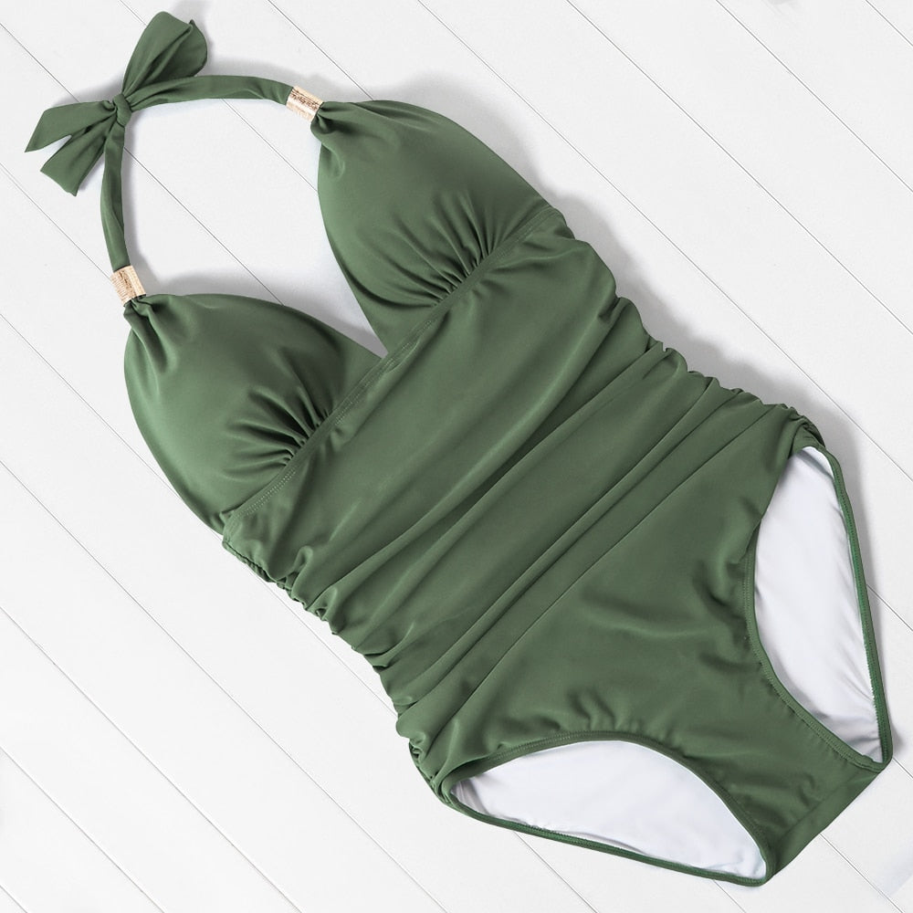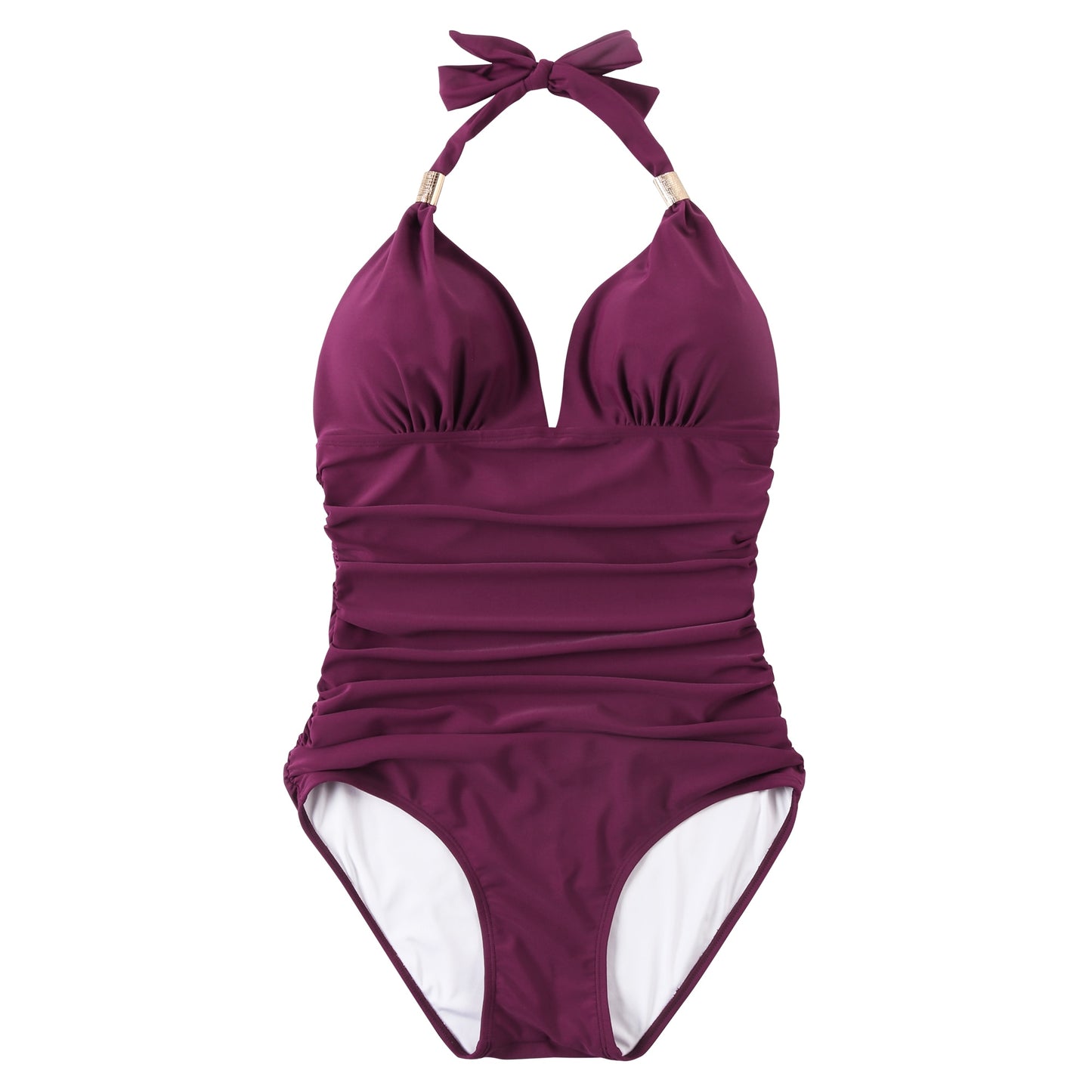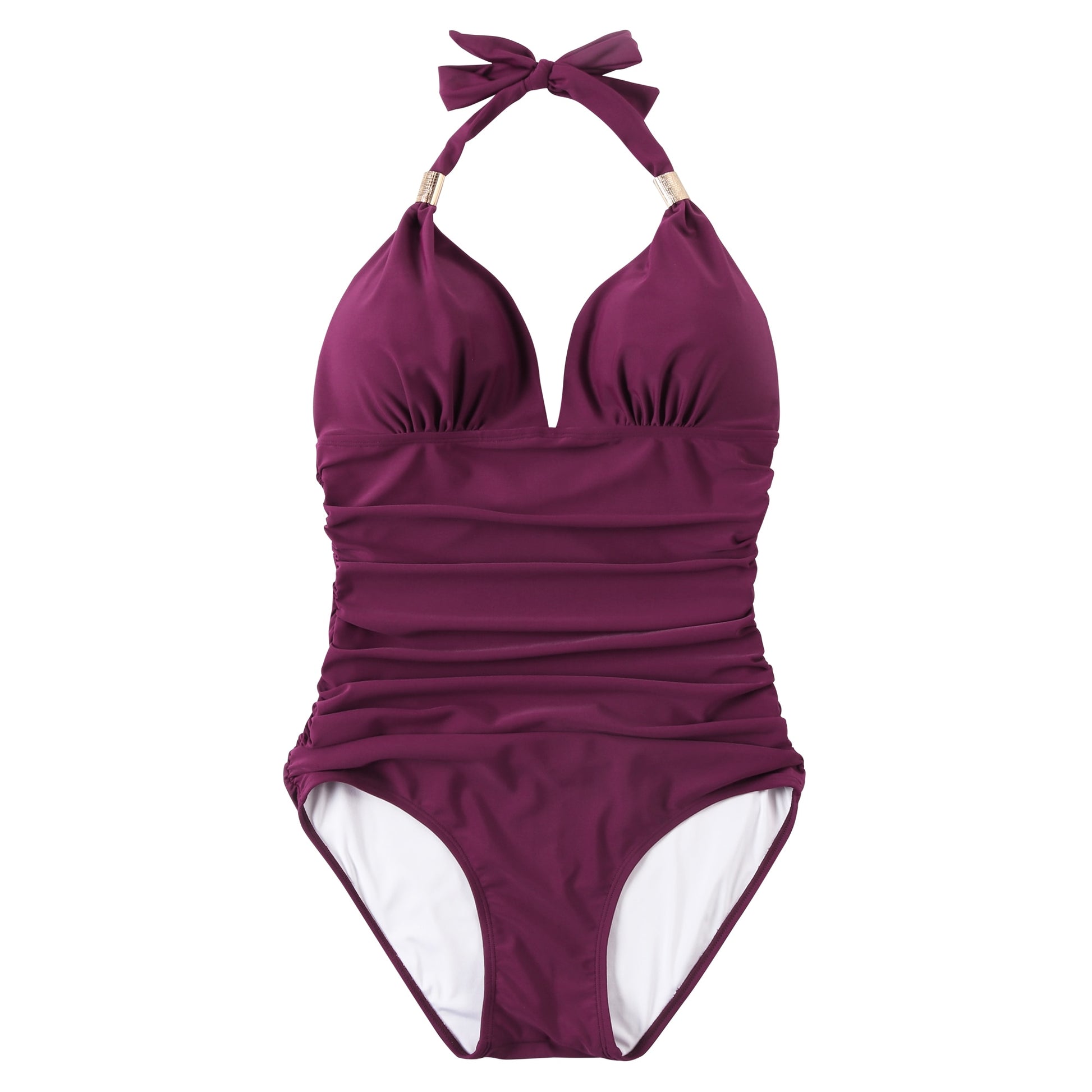 This Women One Piece Halter Neck swimming costume is perfect for achieving a confident look in the pool. With a one piece design and halter neck, it keeps you comfortable while swimming. The quality fabric ensures that you are covered and can move freely while having fun.