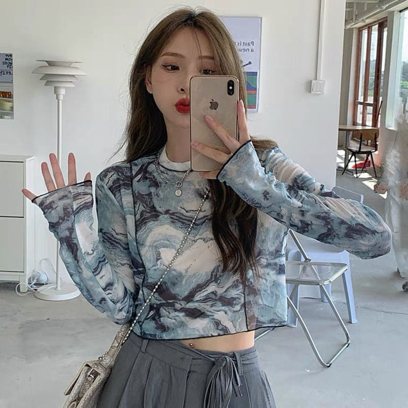 Women Tie-dye Printed Summer Sun-proof Cropped Tops