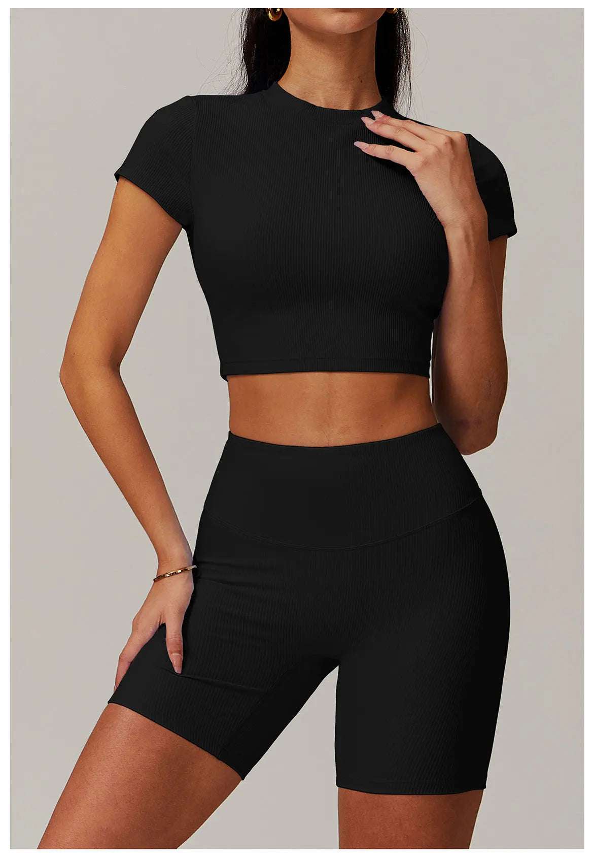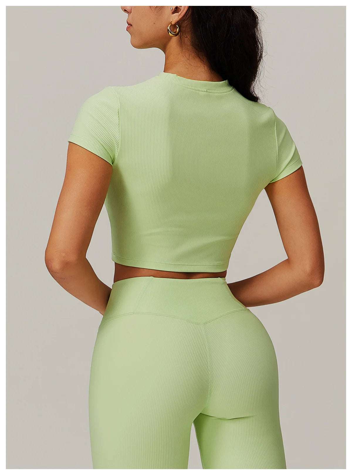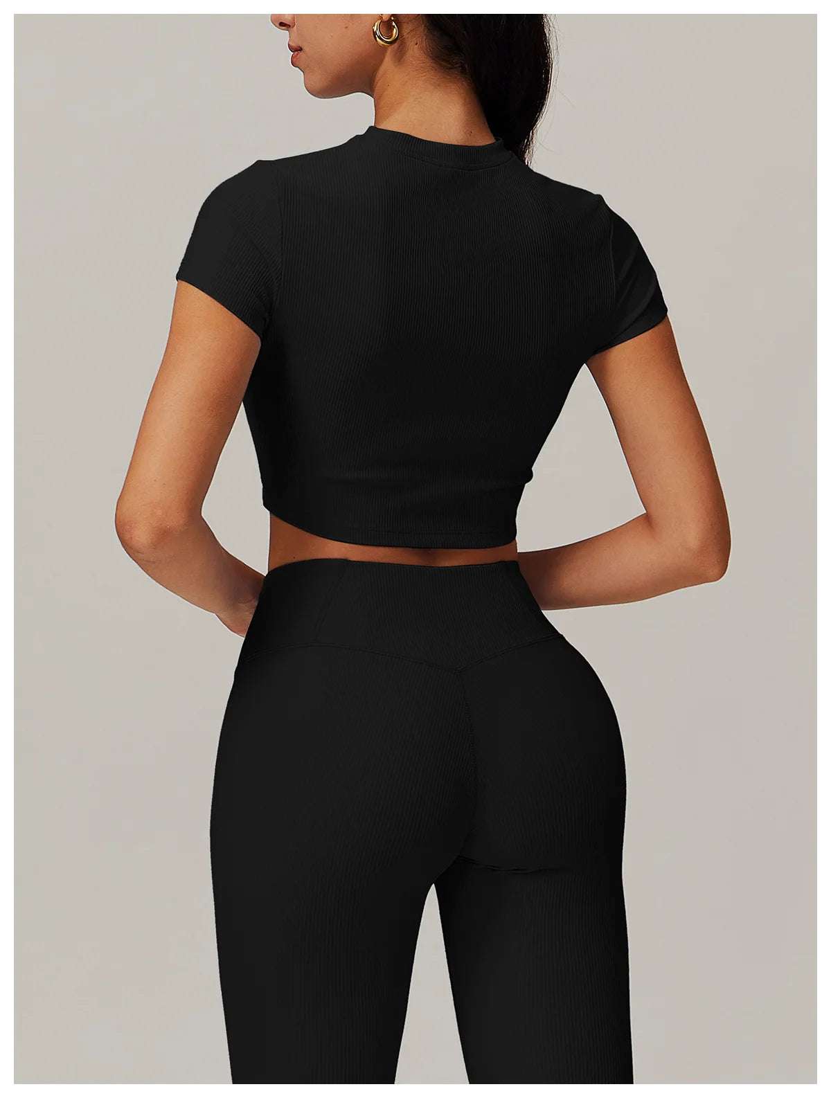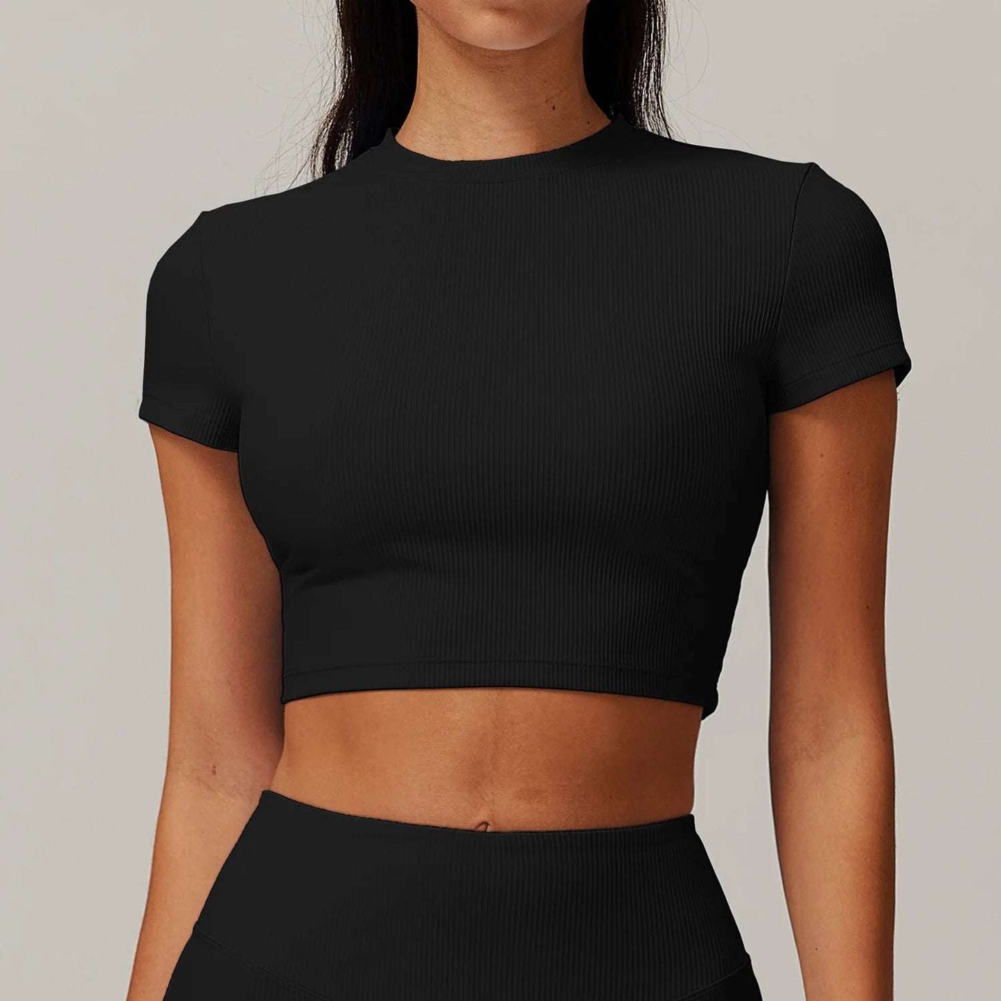 Upgrade your workout gear with this Ribbed Short Sleeve Push Up Yoga Gym Top.