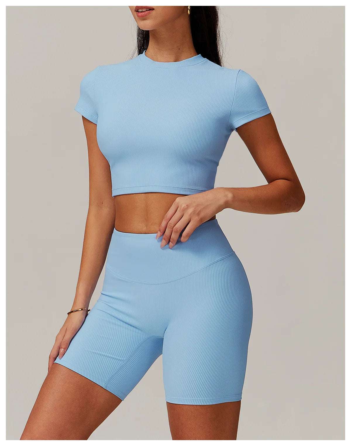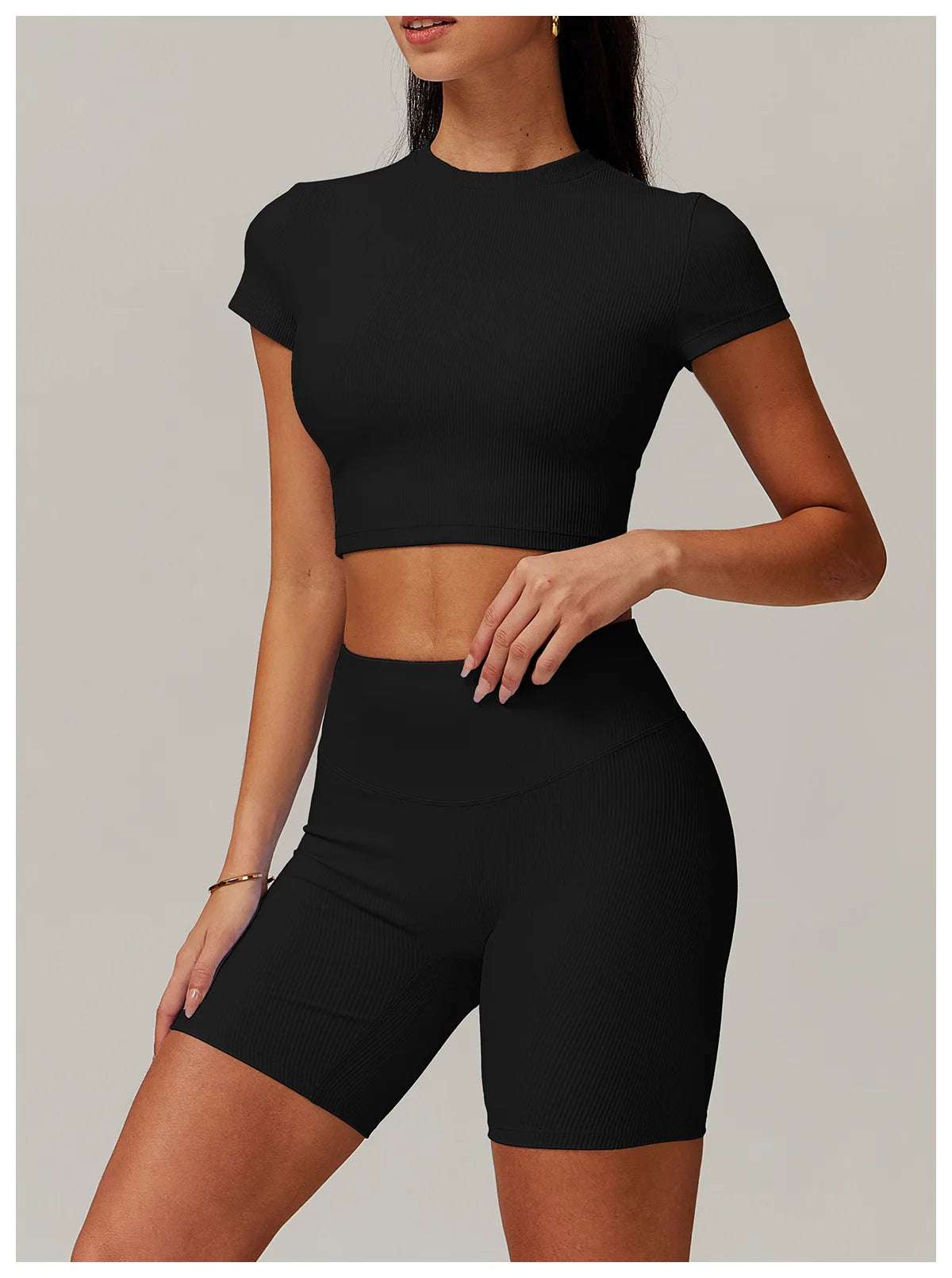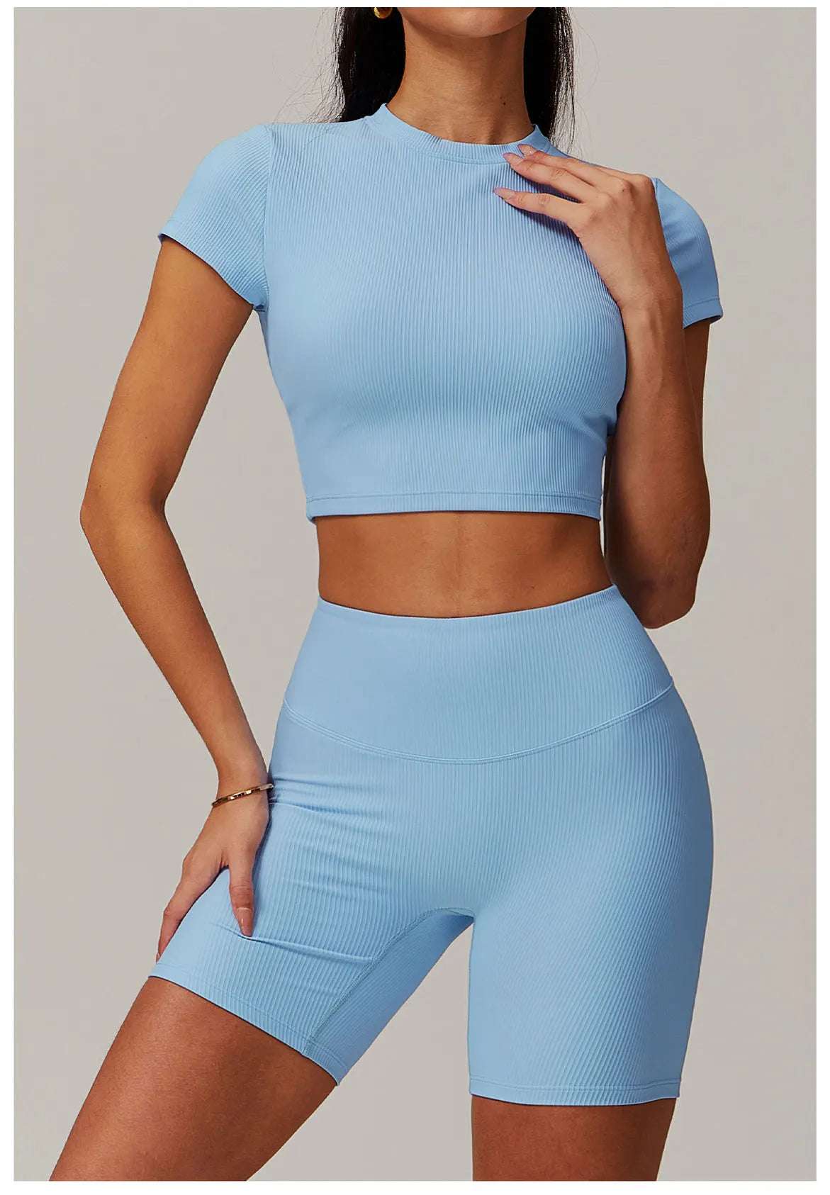 Upgrade your workout gear with this Ribbed Short Sleeve Push Up Yoga Gym Top.