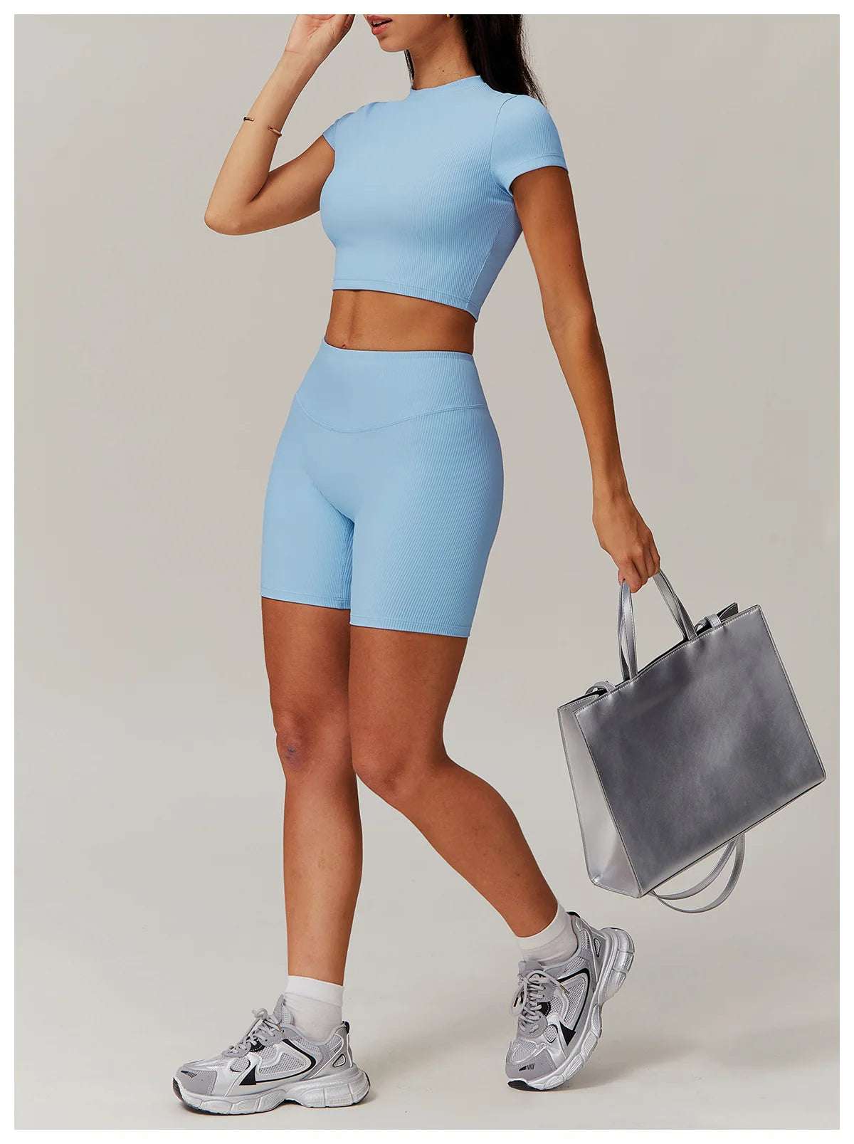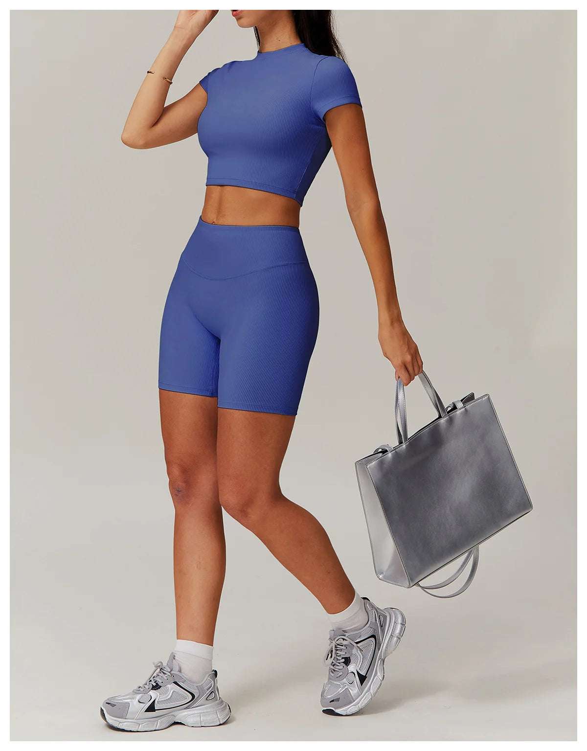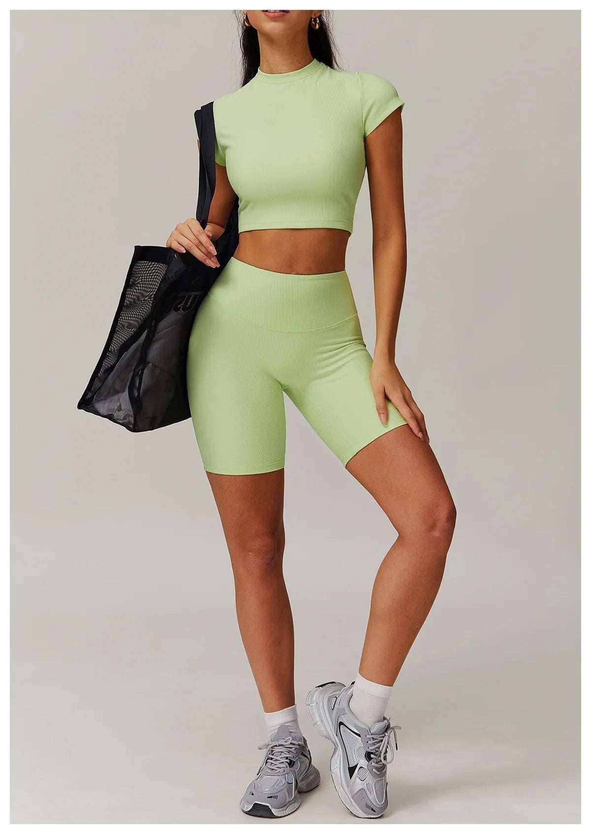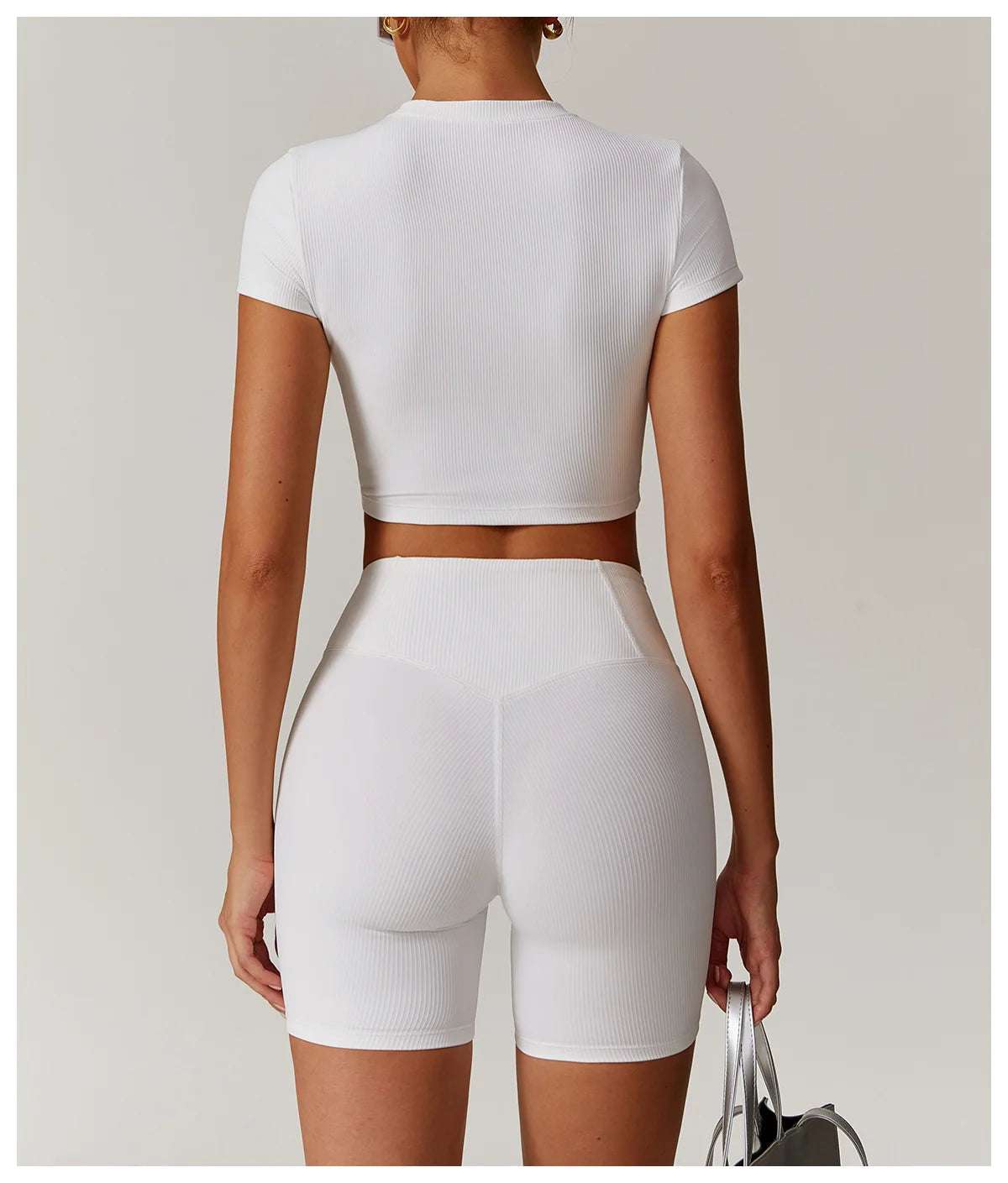 Upgrade your workout gear with this Ribbed Short Sleeve Push Up Yoga Gym Top.