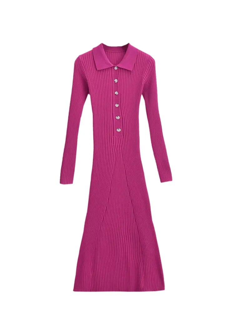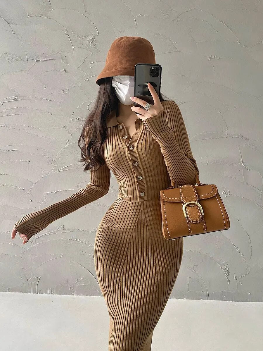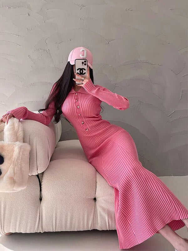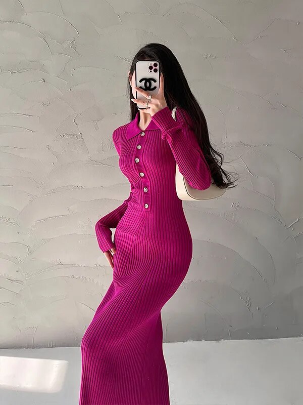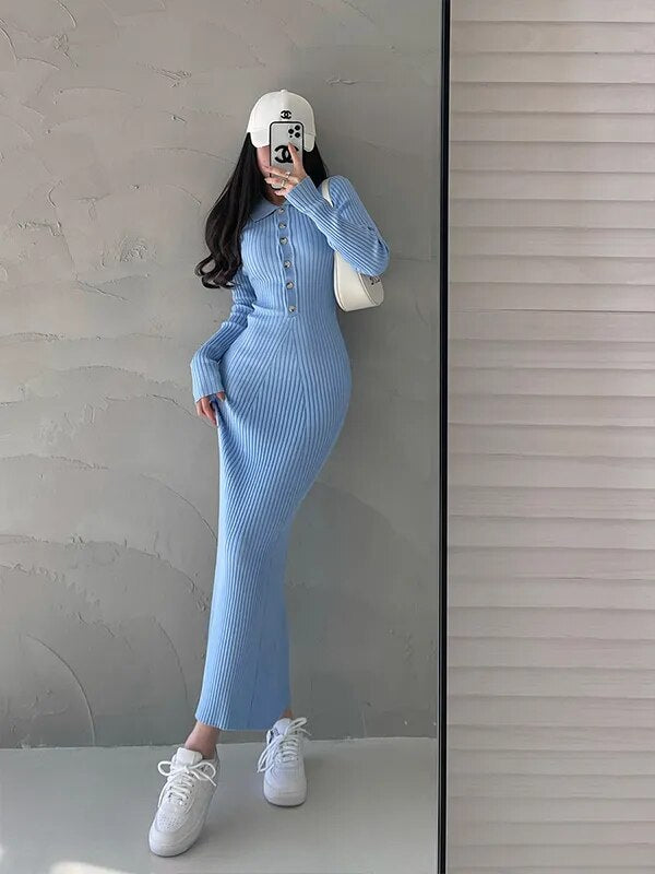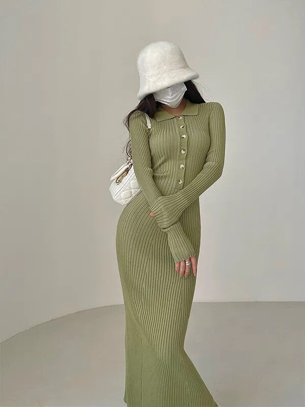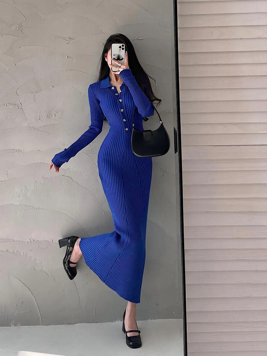 Single Breasted Long-sleeve Knitted Fishtail Dress