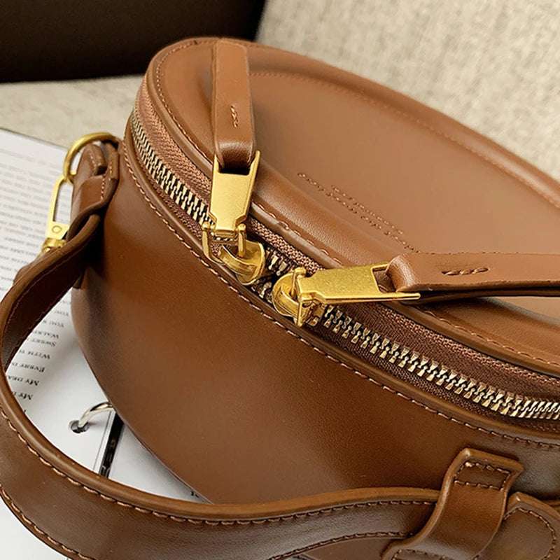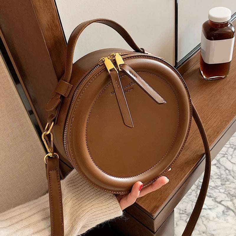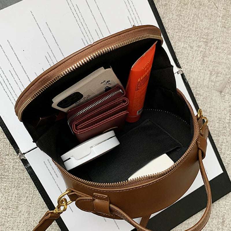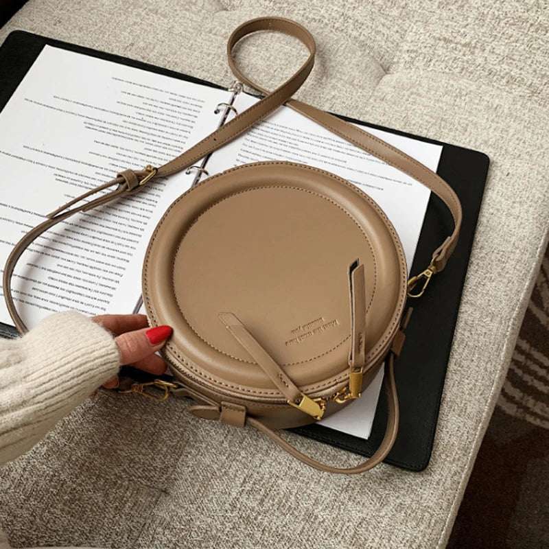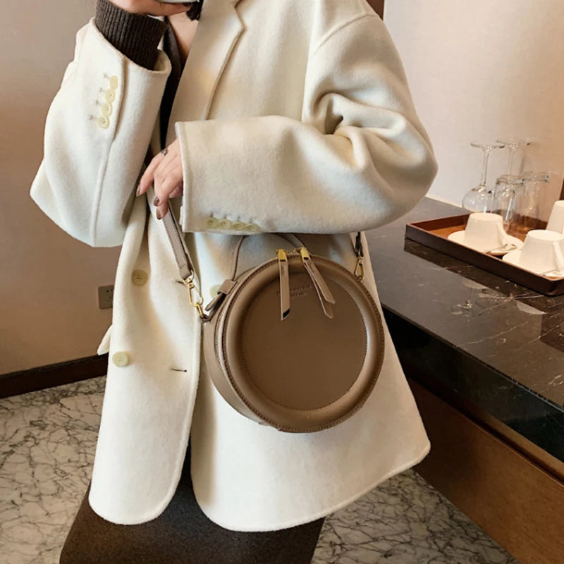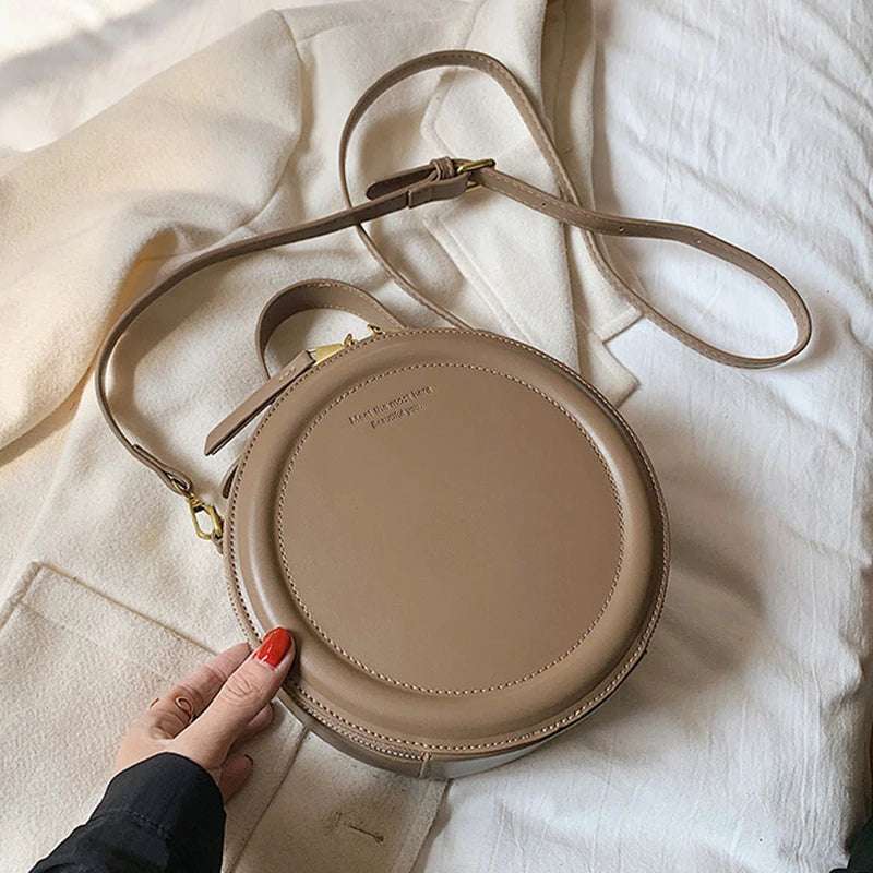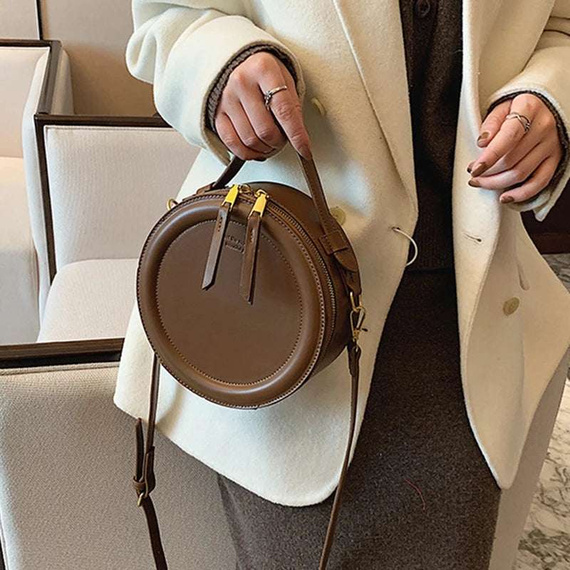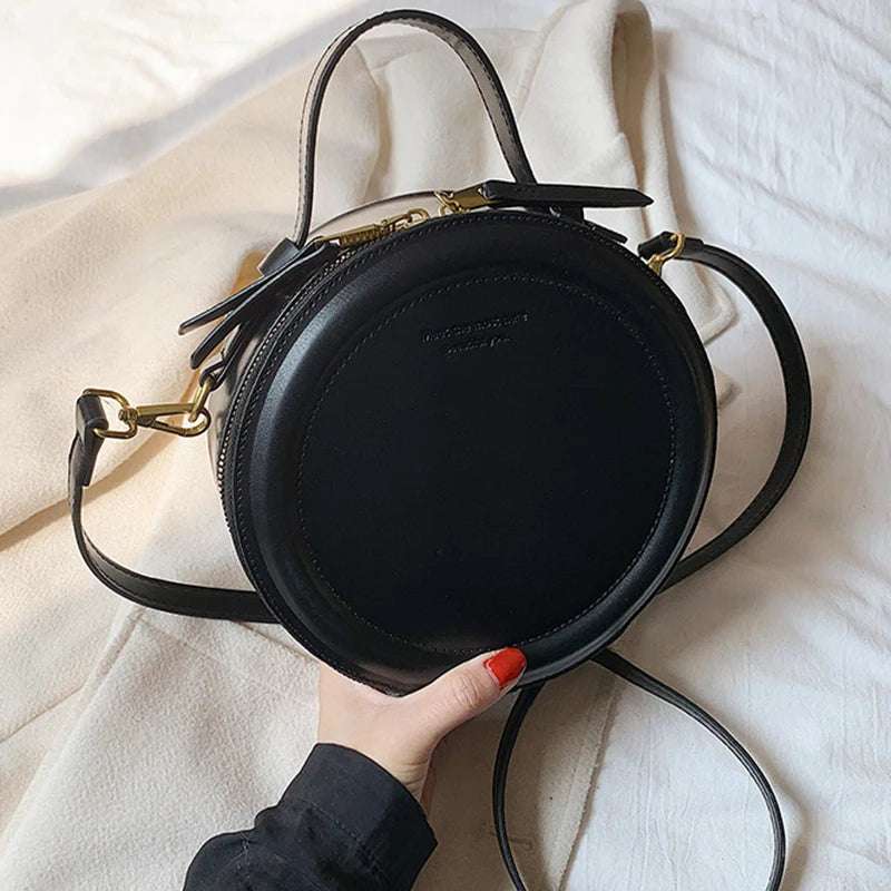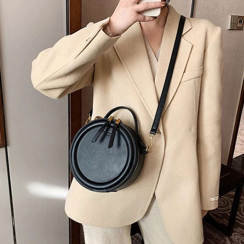 Introducing the must-have accessory for any fashion-forward individual - the PU faux leather stylish Round crossbody bag.
