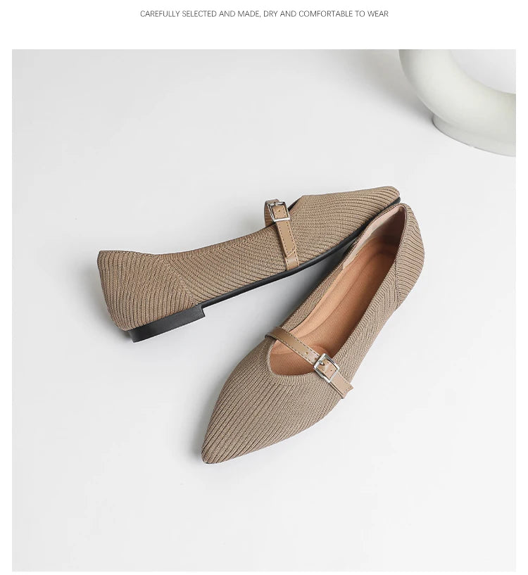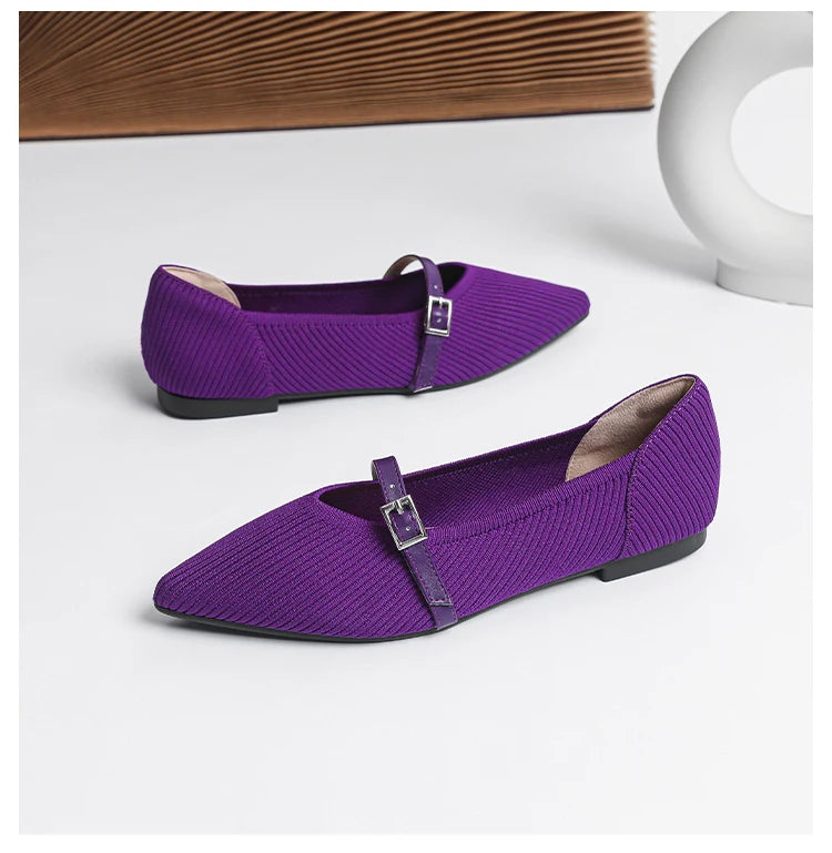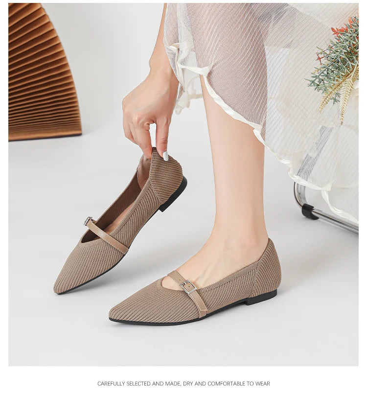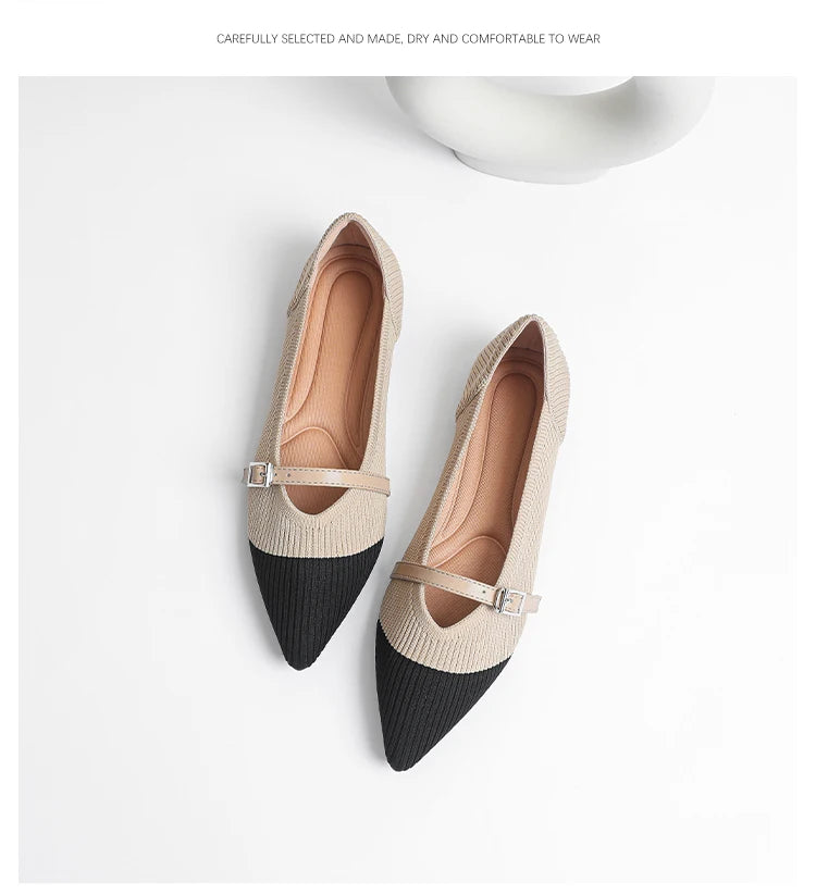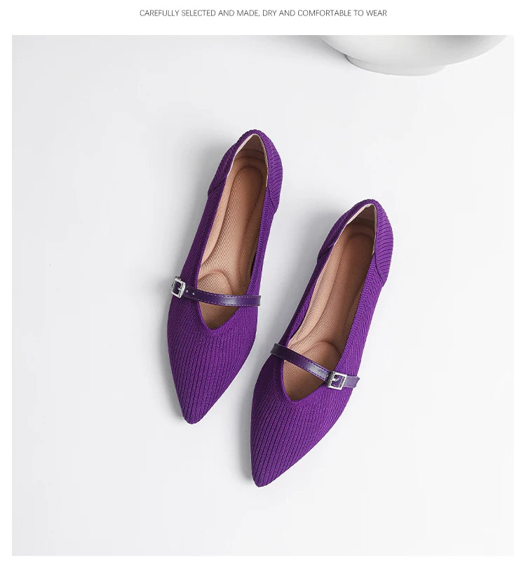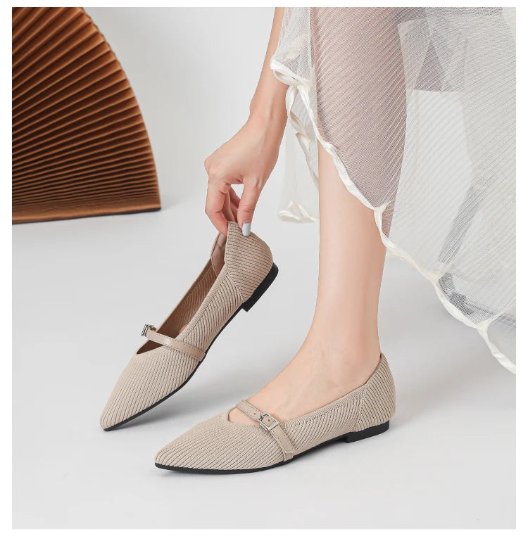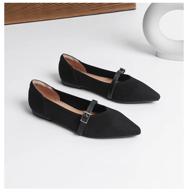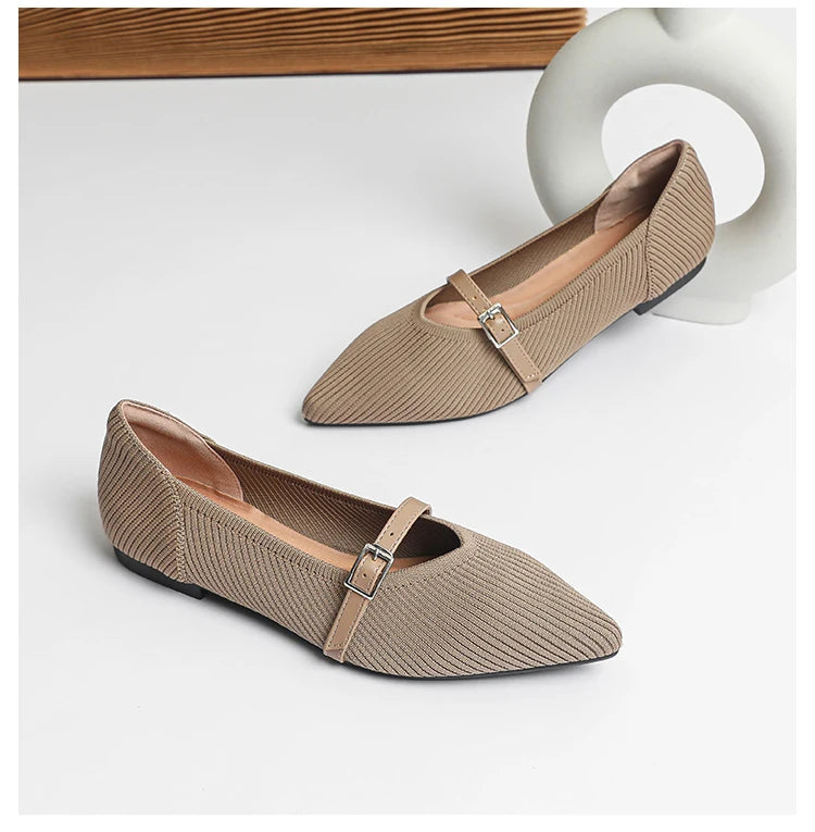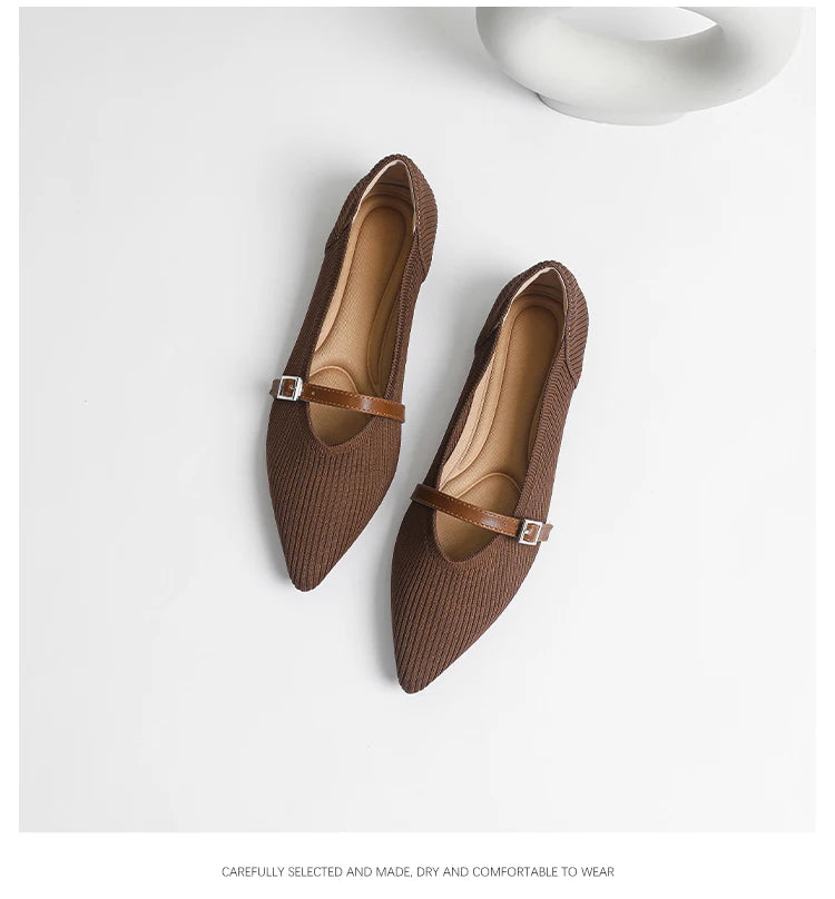 Pointed toe soft knitted flat shoes