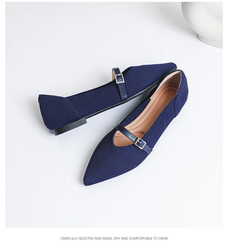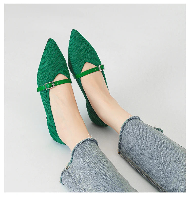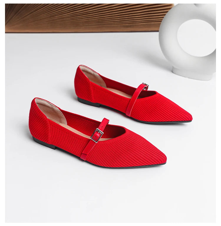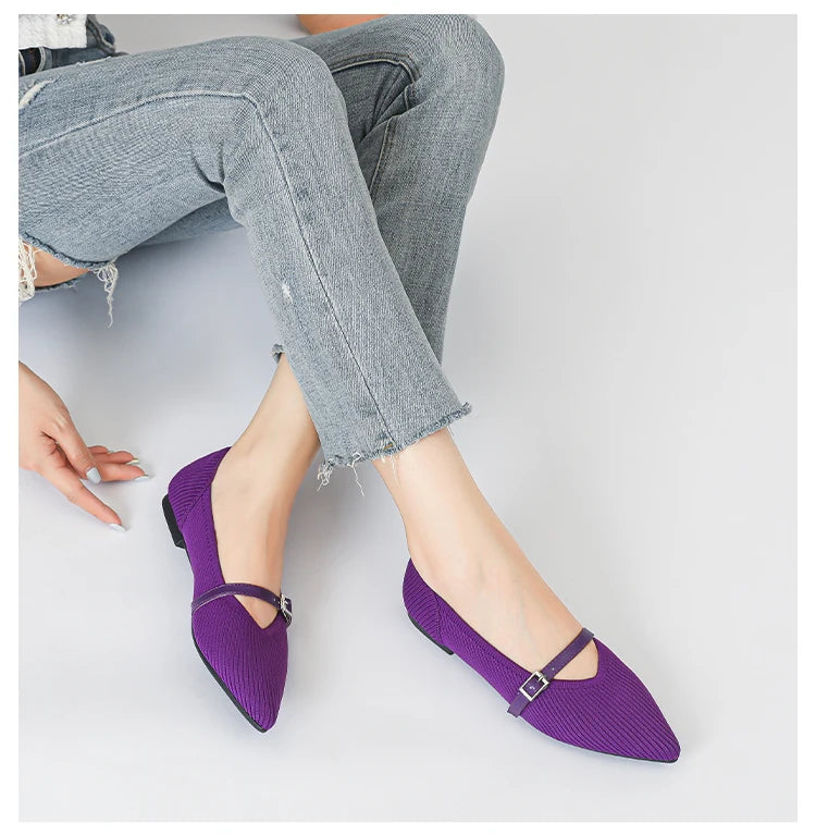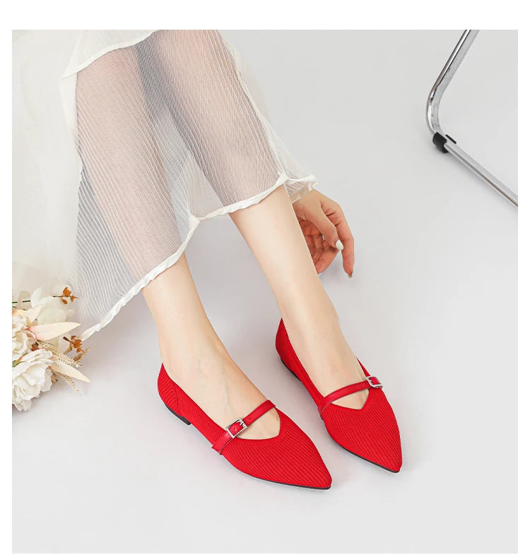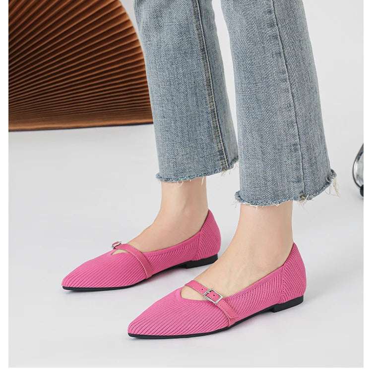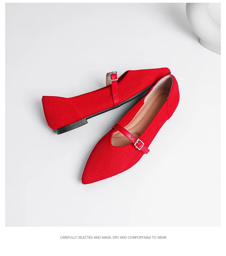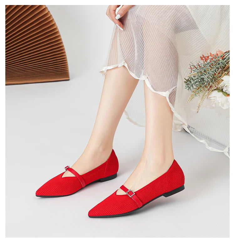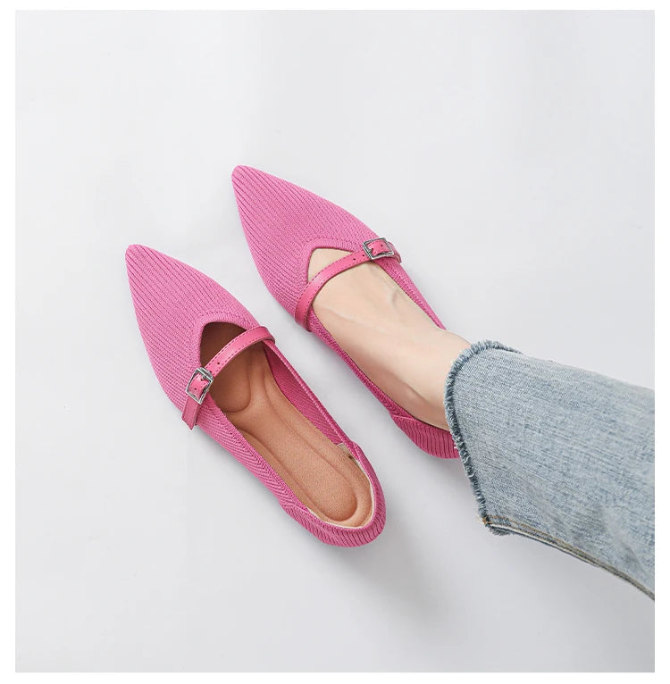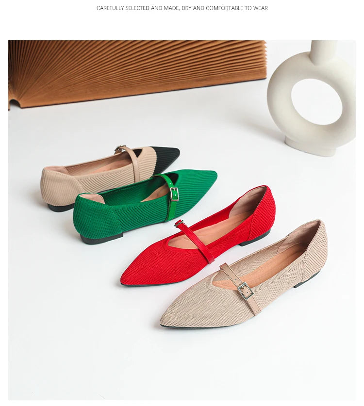 Pointed toe soft knitted flat shoes