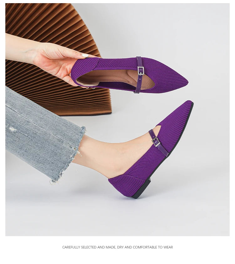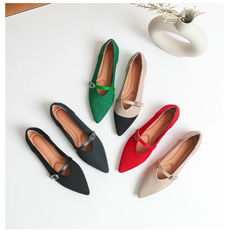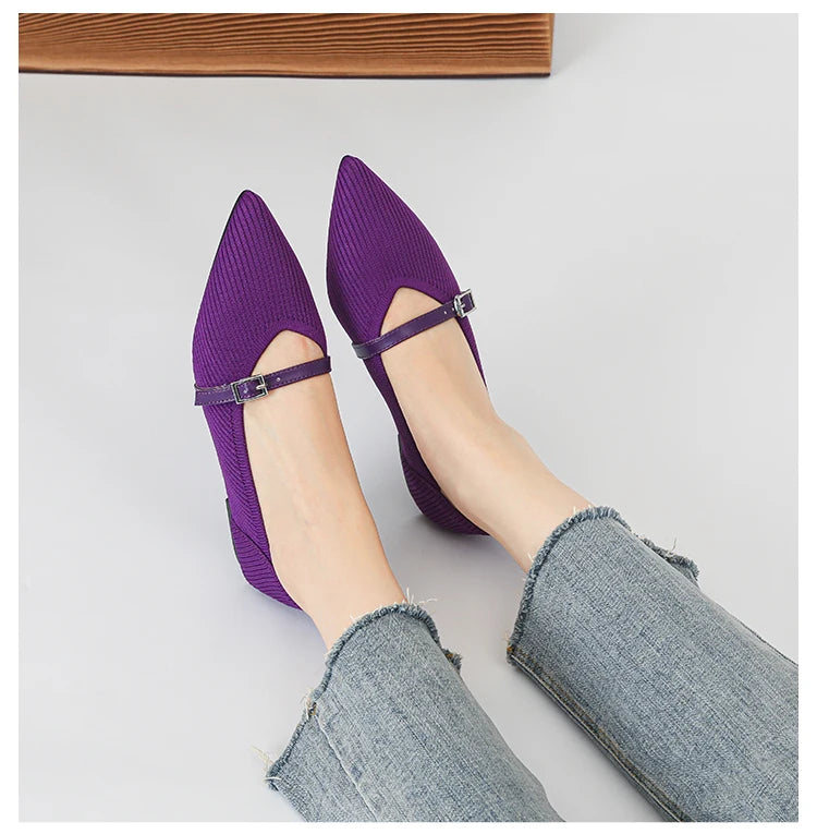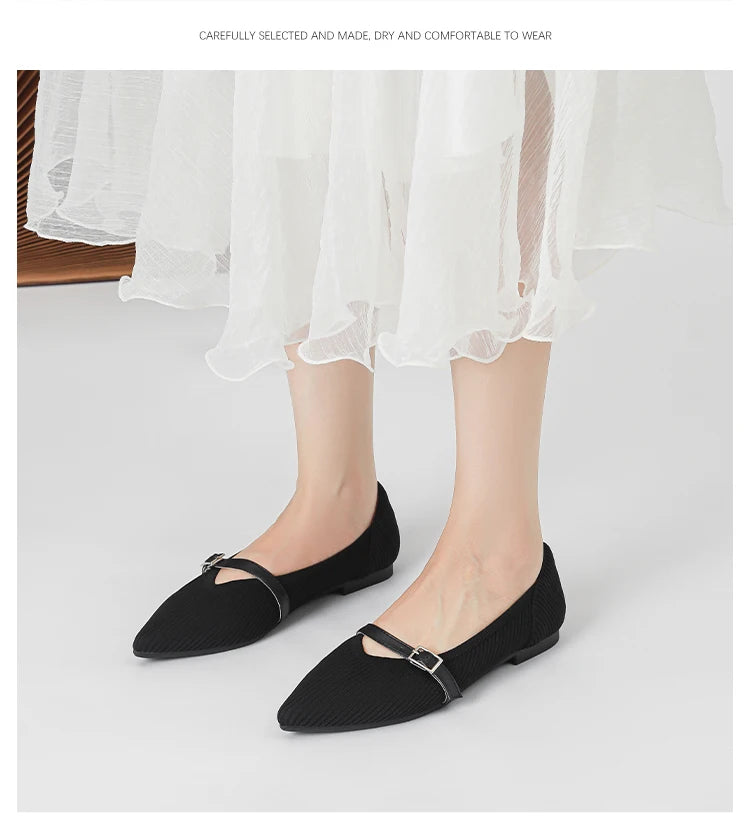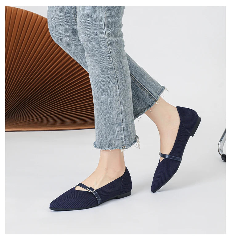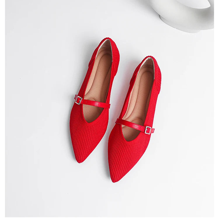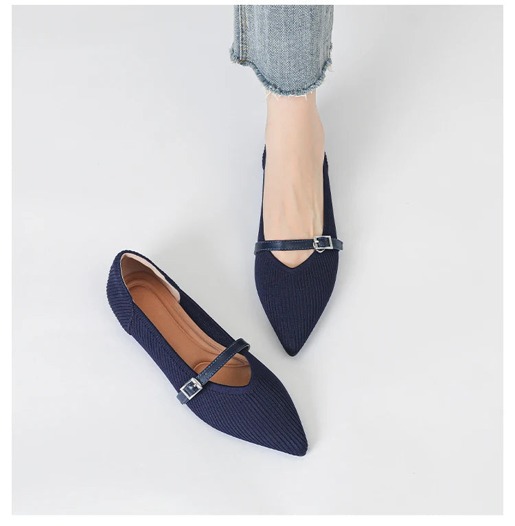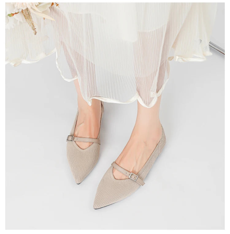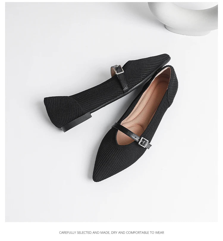 Pointed toe soft knitted flat shoes