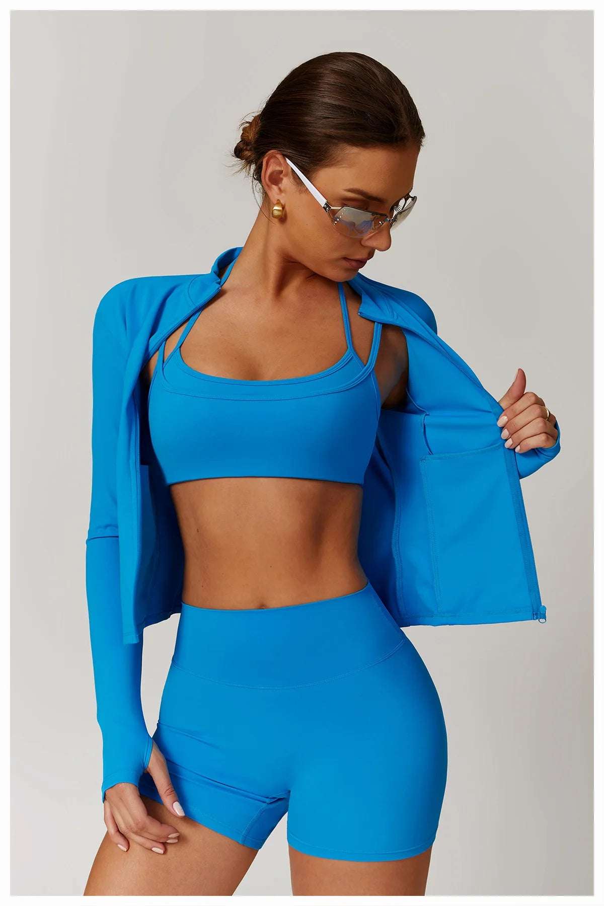 Made from high-quality nylon and spandex materials, this jacket offers both comfort and durability. The slim fit design hugs your body for a flattering silhouette, while the long sleeves provide coverage and warmth during your workouts.