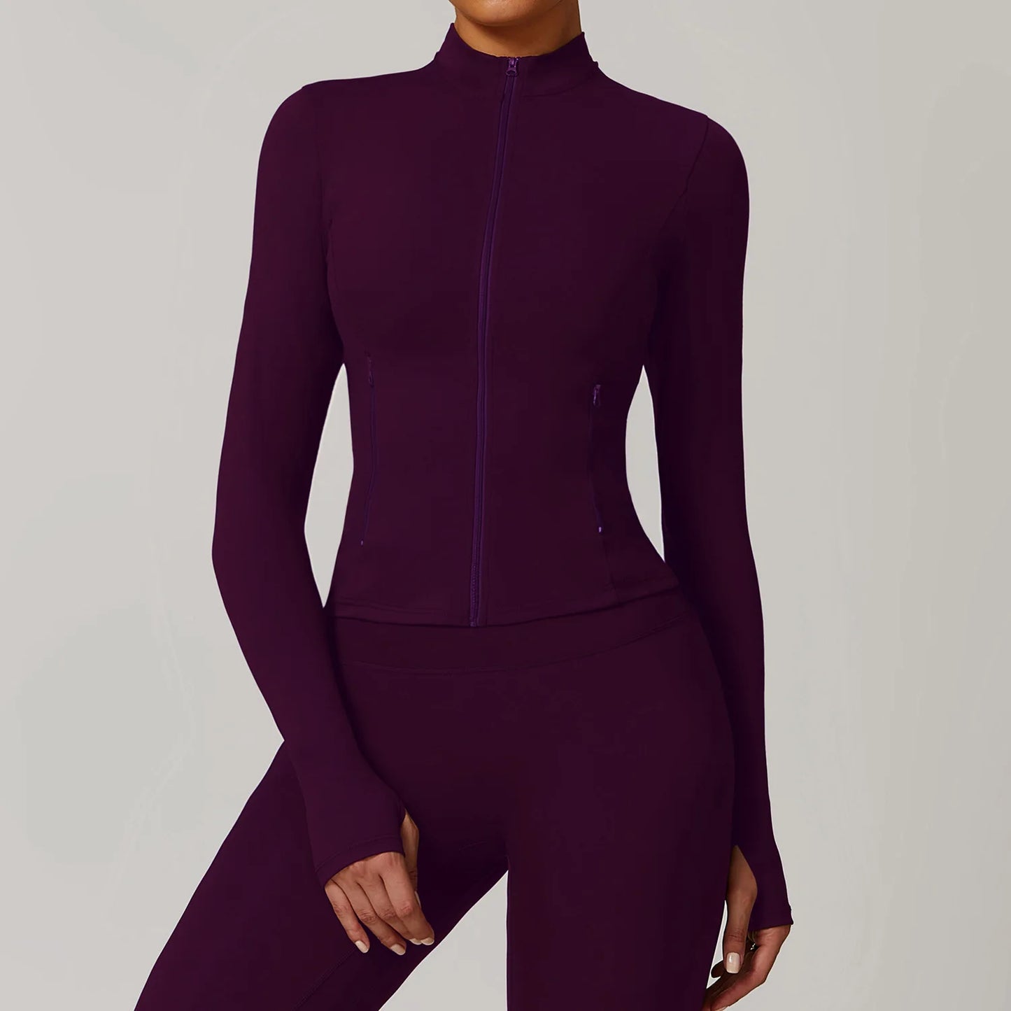 This Slim Fit Long Sleeve Fitness Yoga Gym Jacket is the perfect addition to your workout wardrobe.