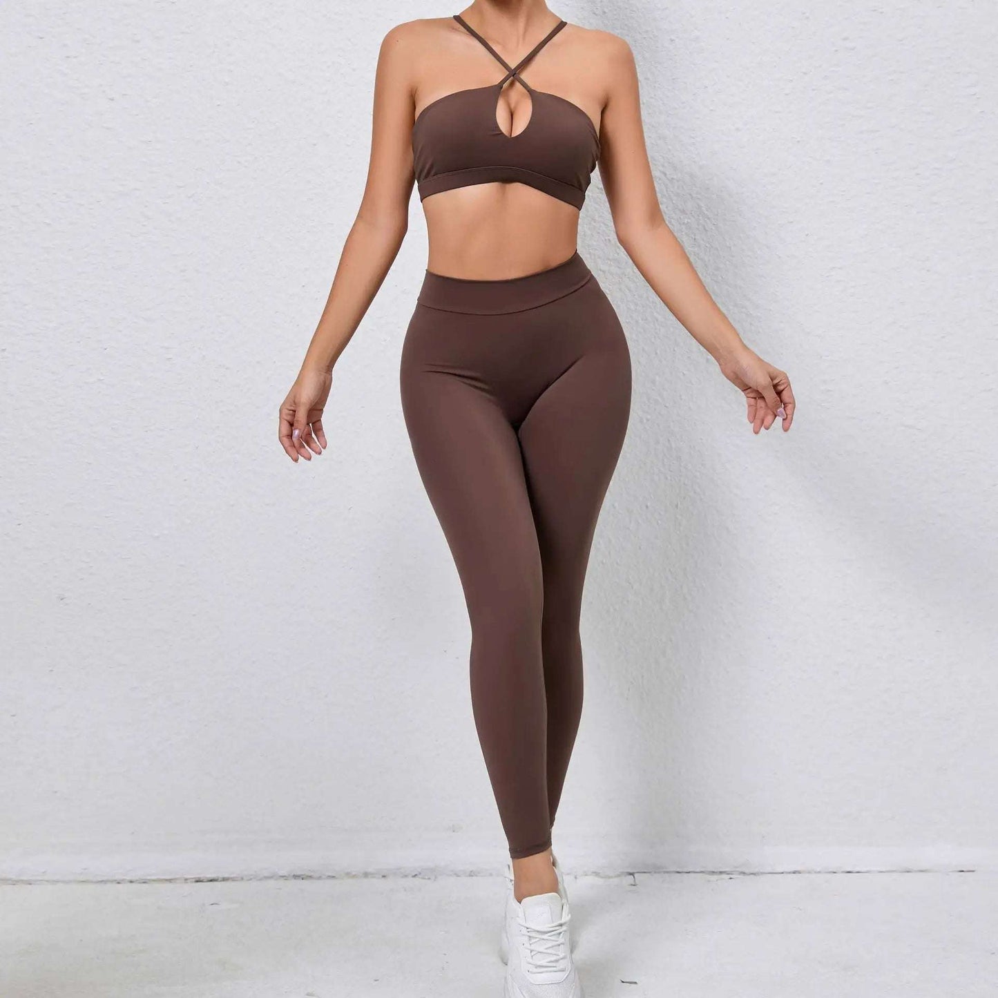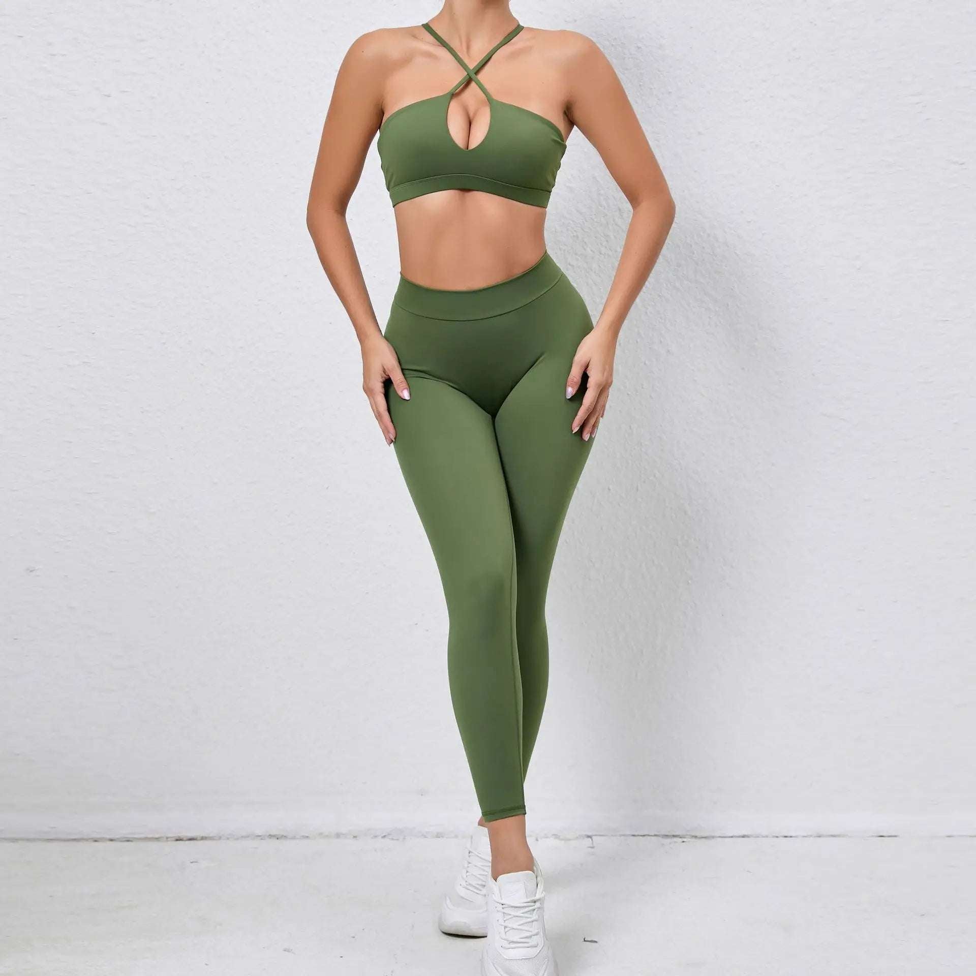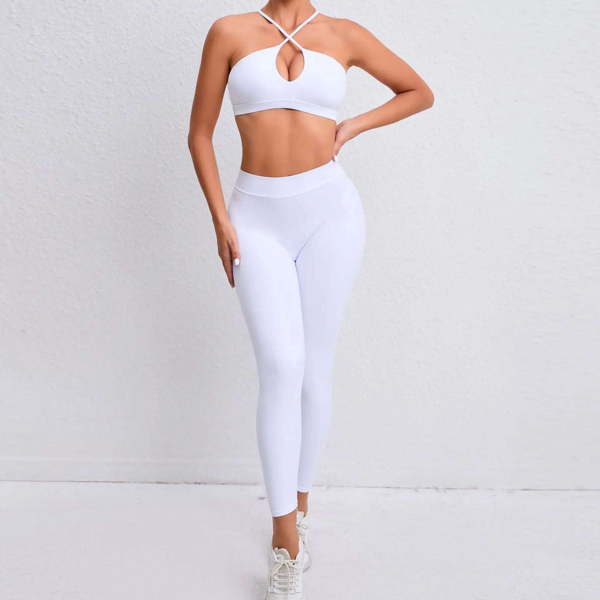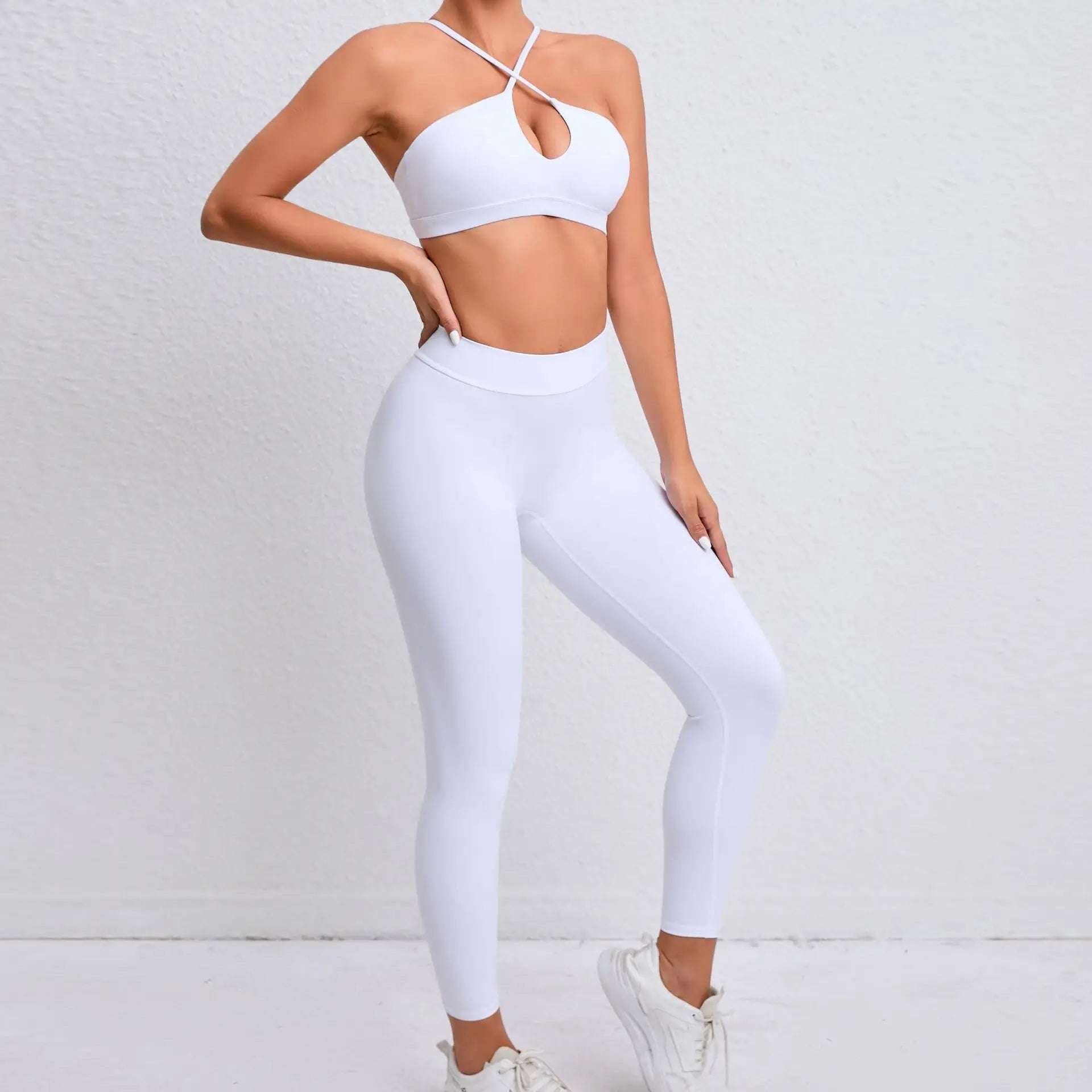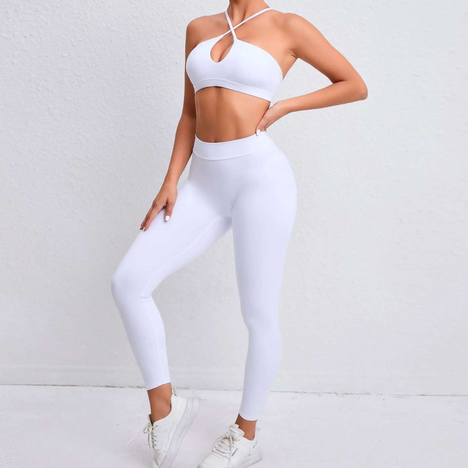 Don't compromise on style or functionality when it comes to your workout gear. Get the best of both worlds with this Halter neck Workout Sports Bra & High Waist Leggings set. Order now and take your fitness game to the next level!