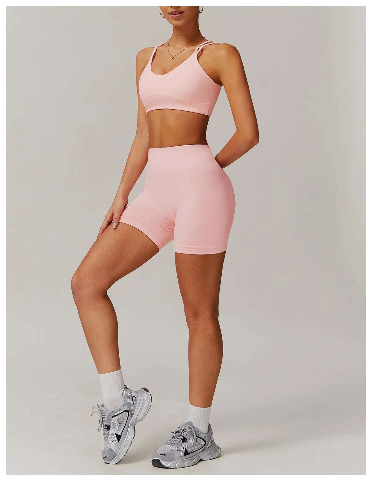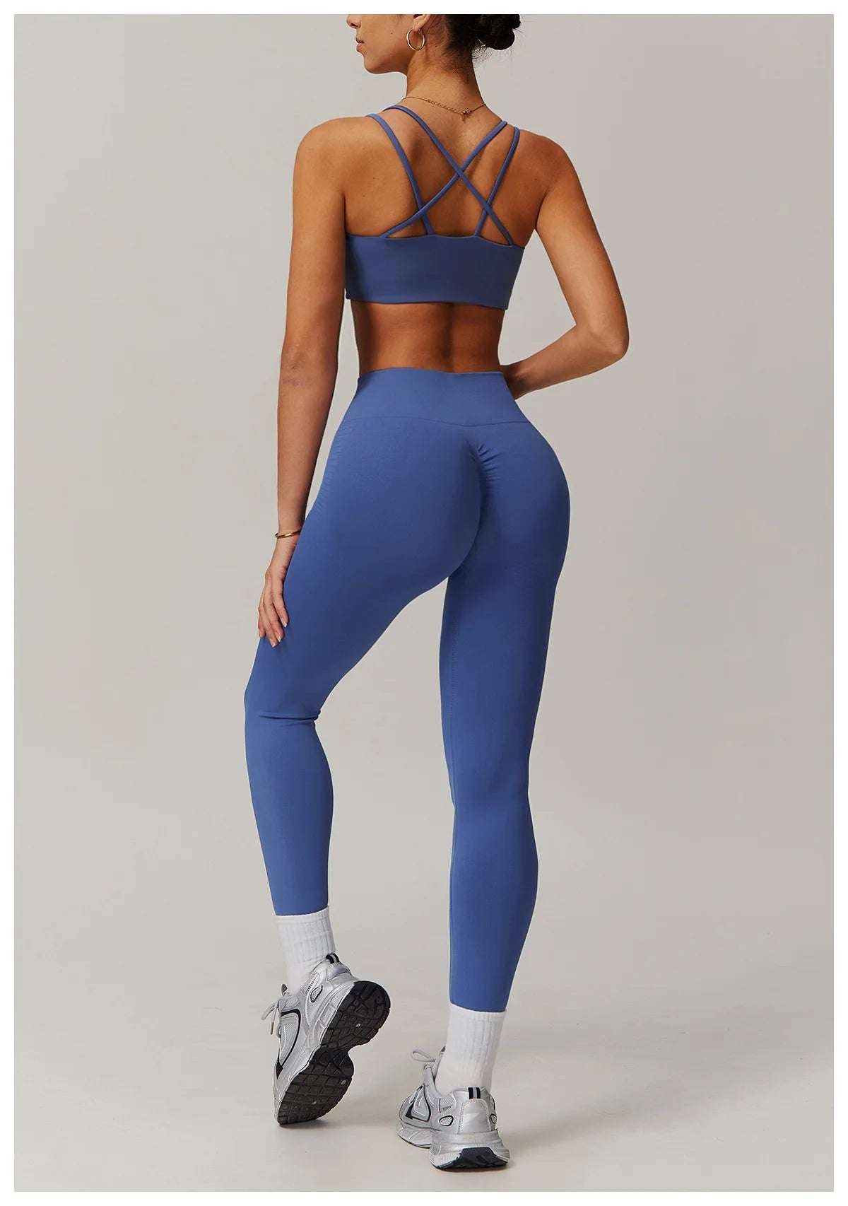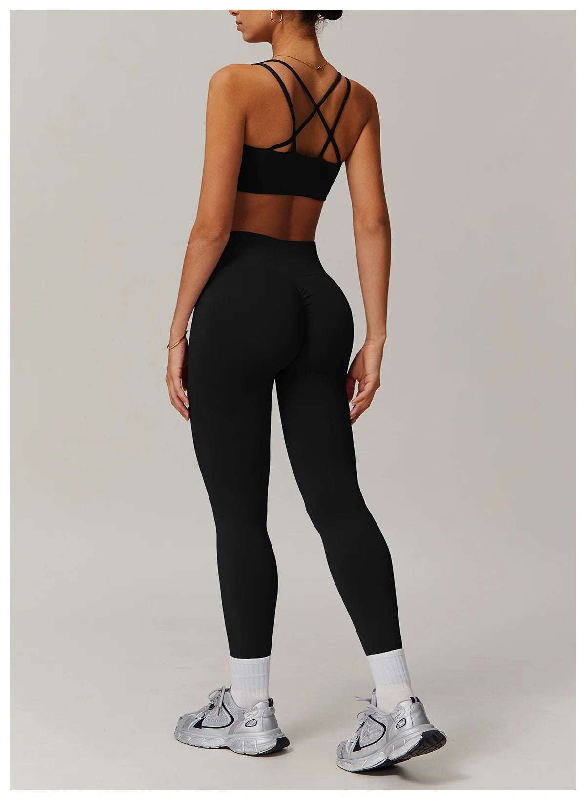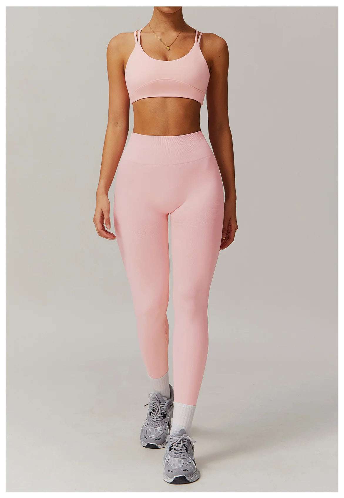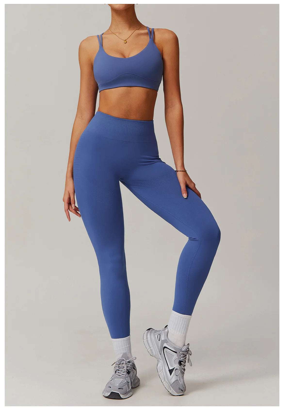 The seamless leggings offer a smooth and flattering fit, while the sports bra provides ample support for any type of workout. This set is perfect for yoga, gym sessions, or any other fitness activities.