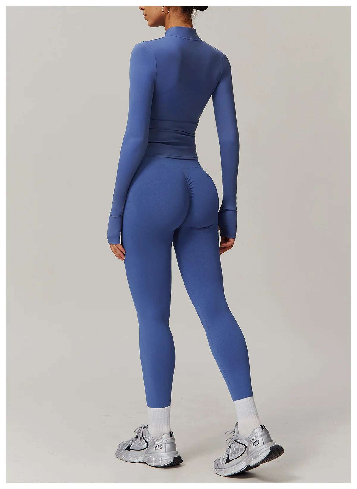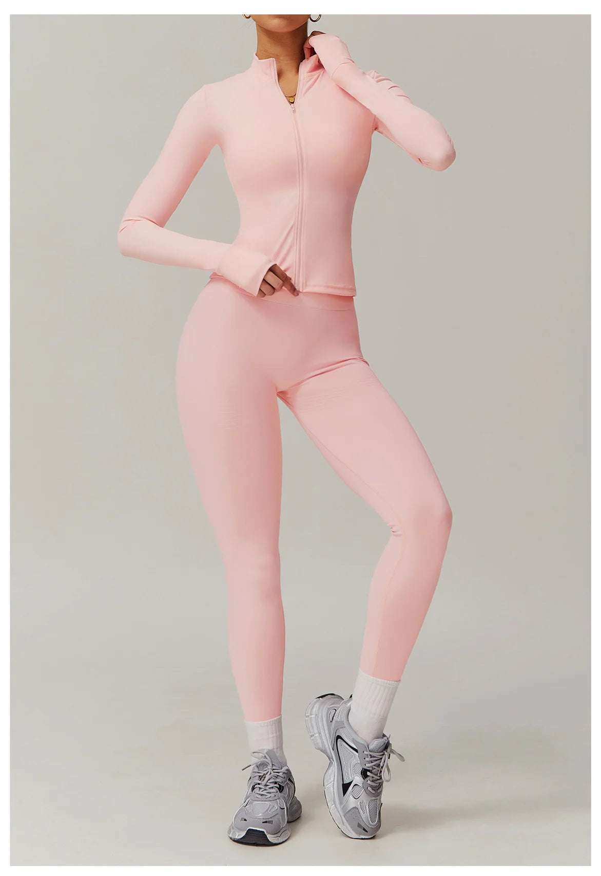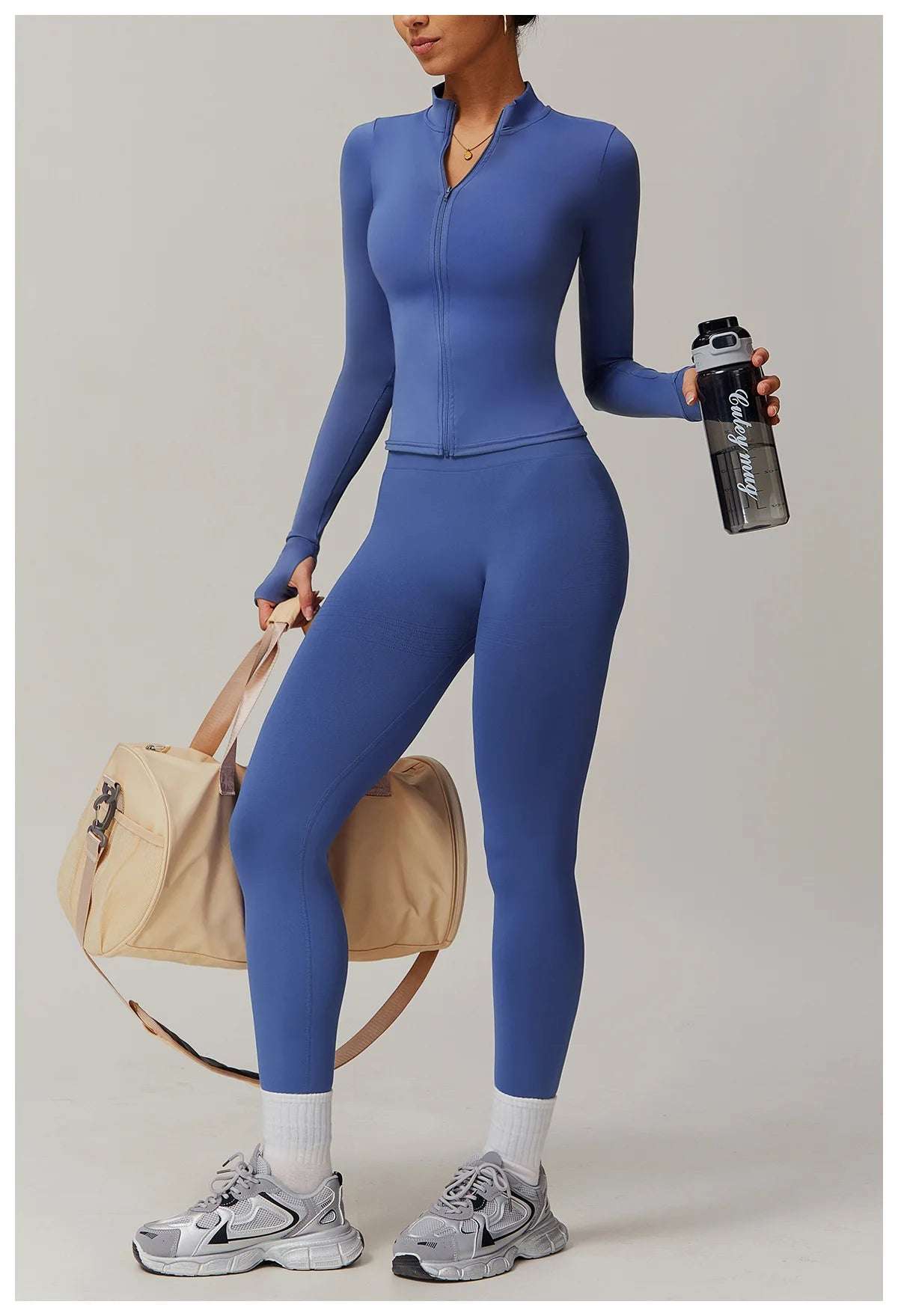 Long Sleeved zipper Jacket Seamless Leggings sports set