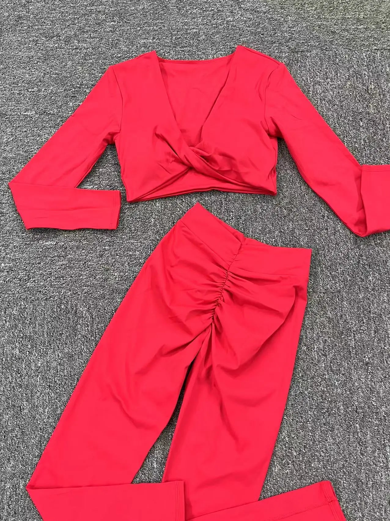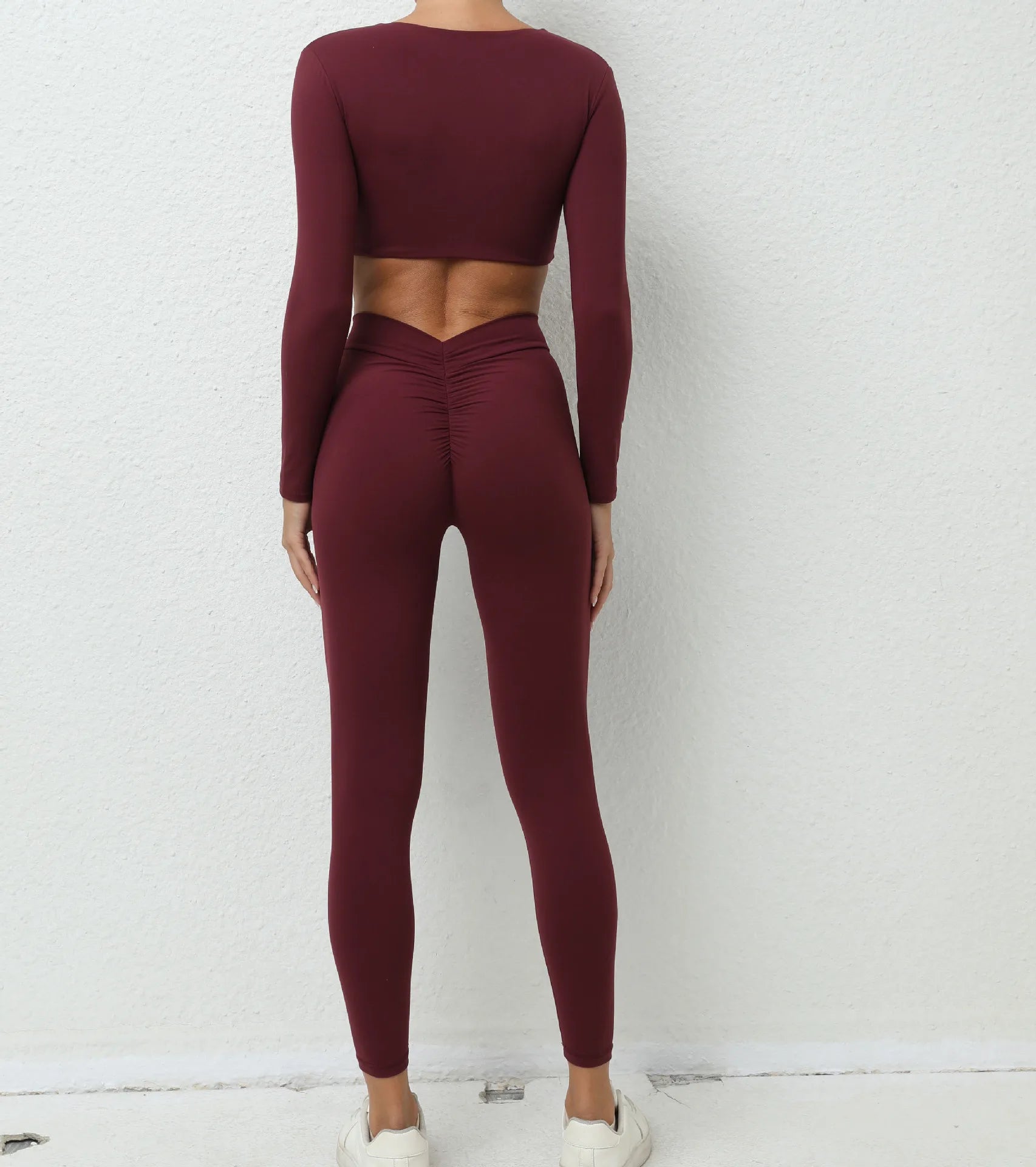 Long Sleeve scrunch Crop & High Waist Leggings Sports set