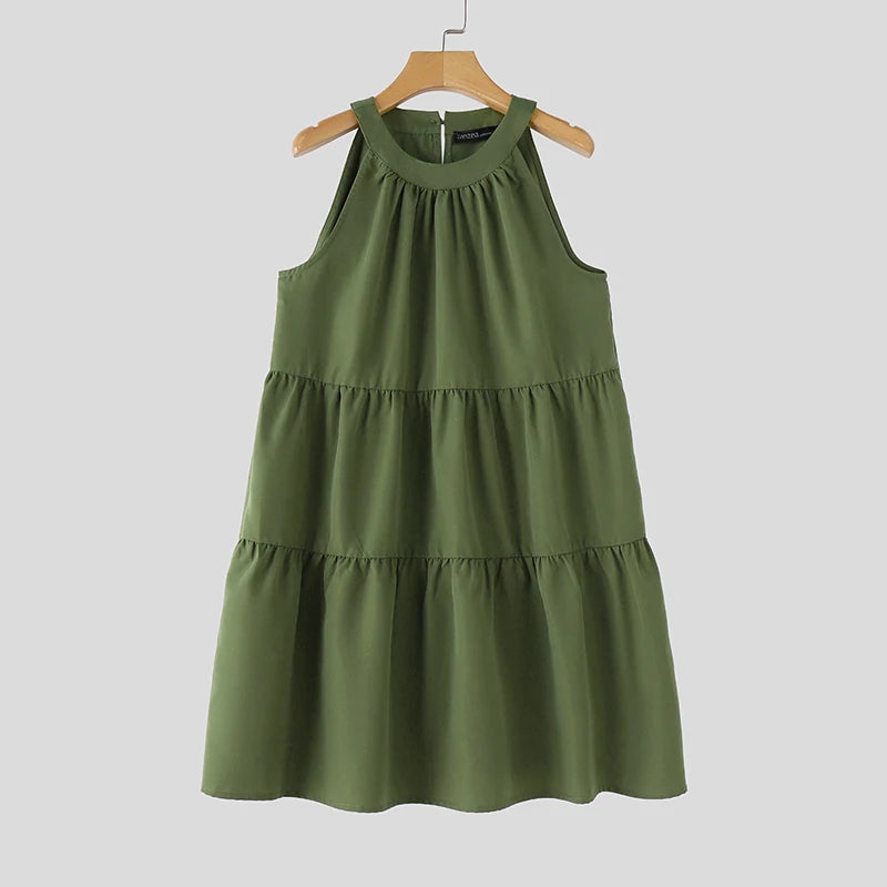 Tie the knot (literally) in this flirty Halter neck Sleeveless Tiered Dress. With its playful tiers and sleeveless design, this dress is perfect for a sunny day out. Embrace your carefree side and have some fun in this quirky dress.