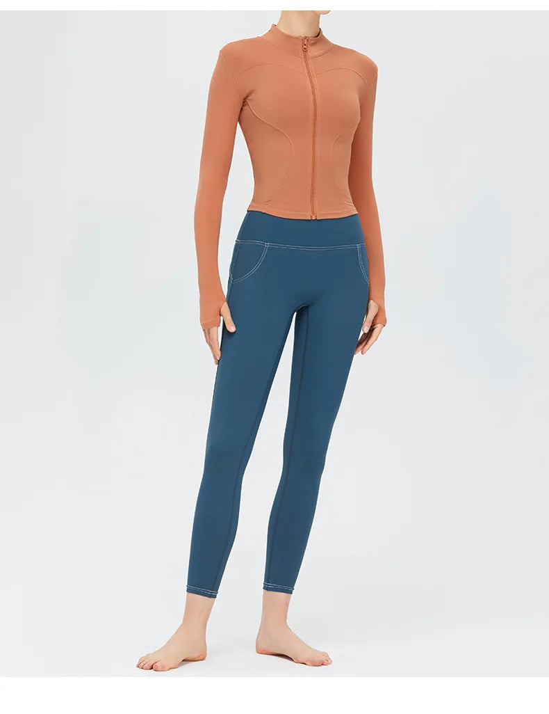 Introducing the Zipper Long Sleeve Fitness Yoga Jacket, the perfect addition to your workout wardrobe.