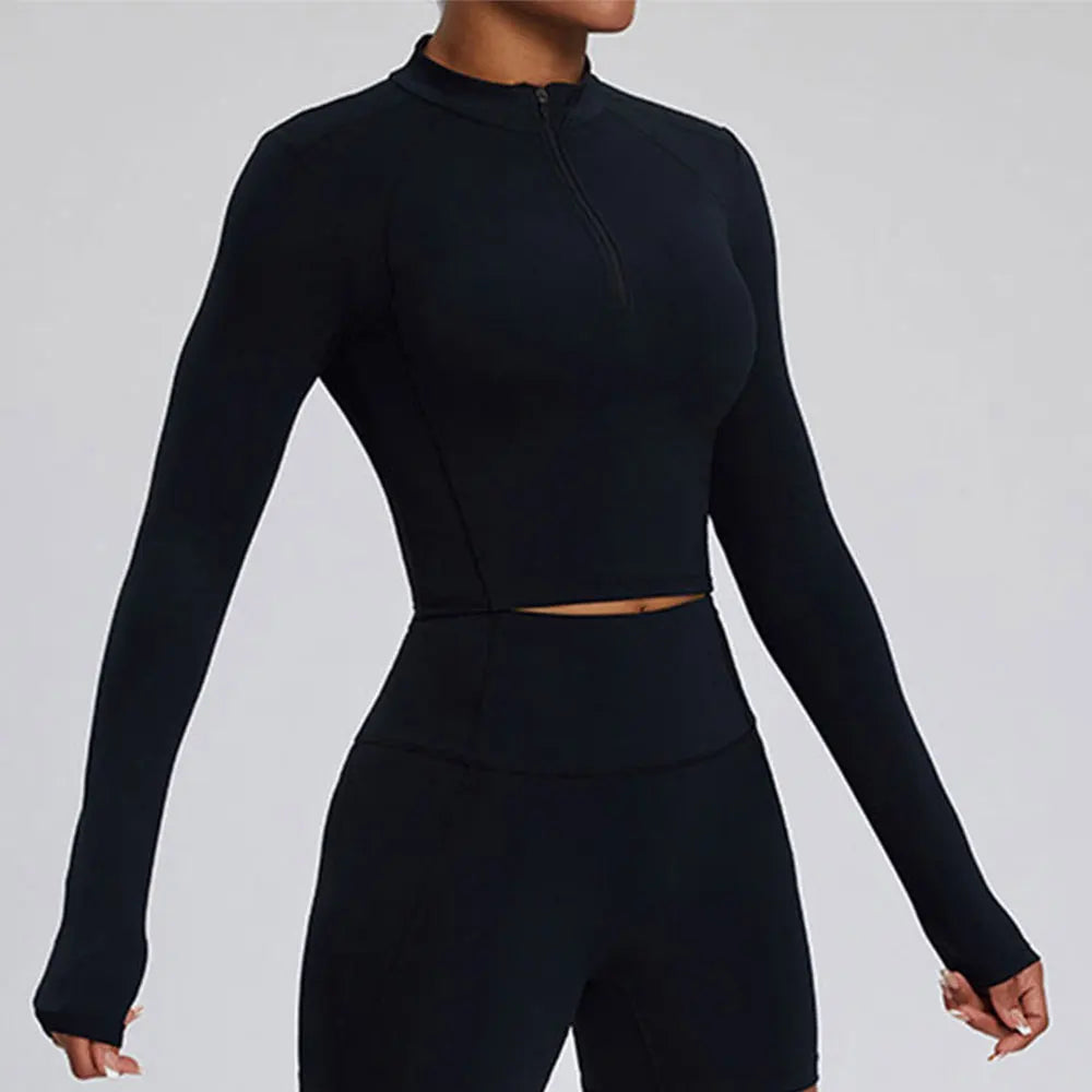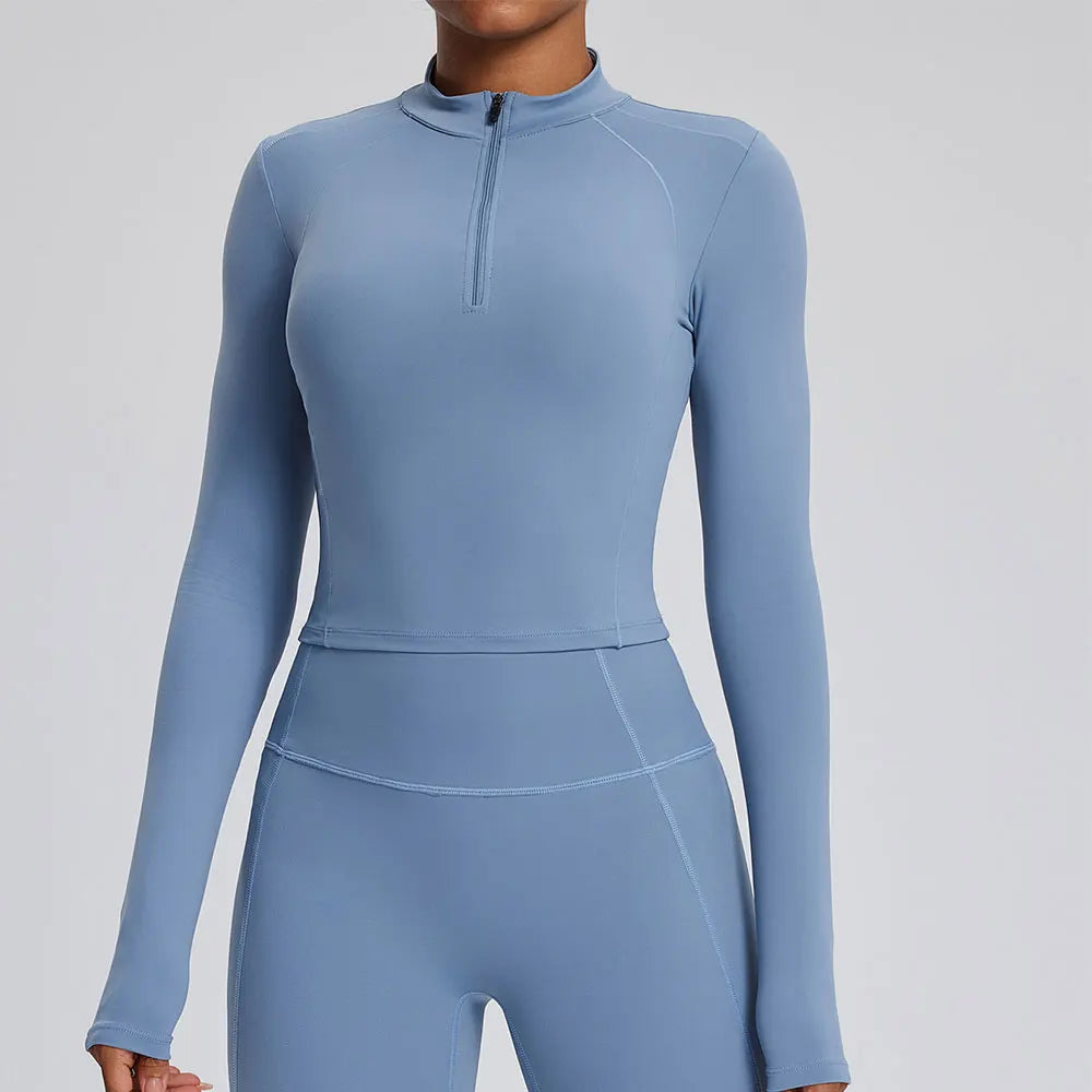 Zipper Long Sleeved Outdoor Running Fitness Top
