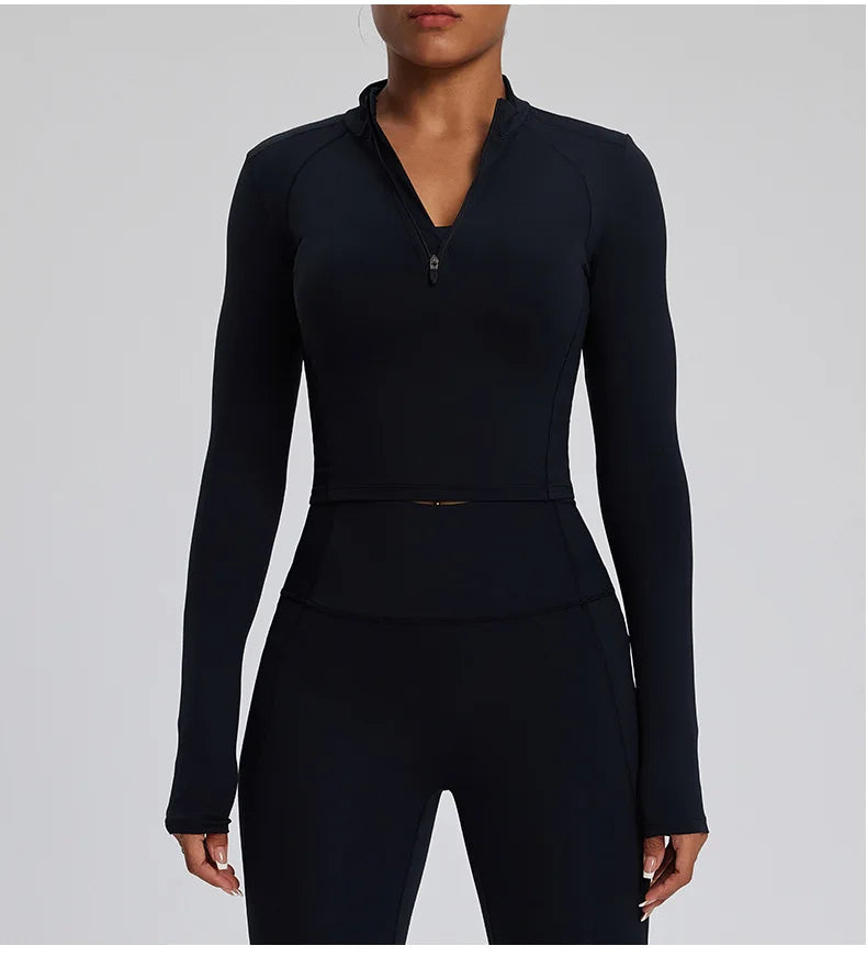 Don't sacrifice style for functionality - get the best of both worlds with this Zipper Long Sleeved Outdoor Running Fitness Top. Order yours today and elevate your workout wardrobe!